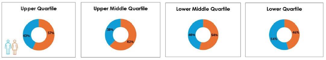 The below charts show the proportion of males to females across Office’s four pay quartiles.