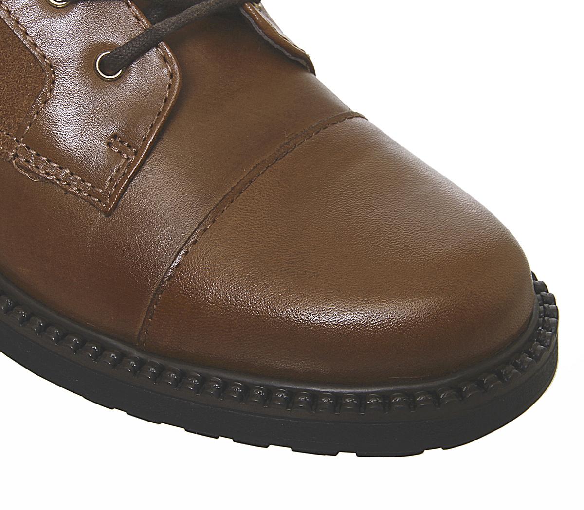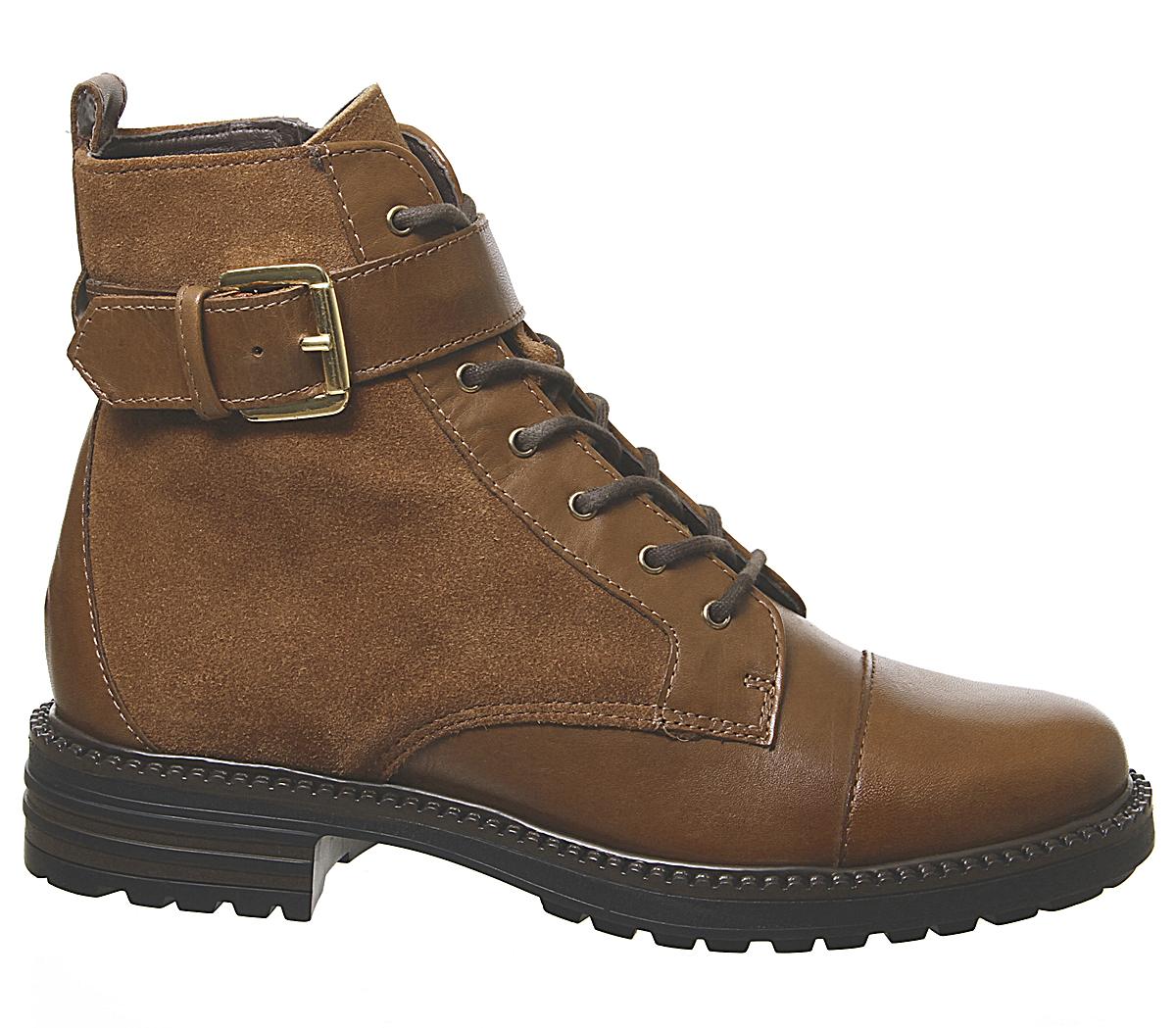 Casual rugged boot featuring a lace-up ankle strap design, side zip fastening and cleated rubber sole. In a tan colourway