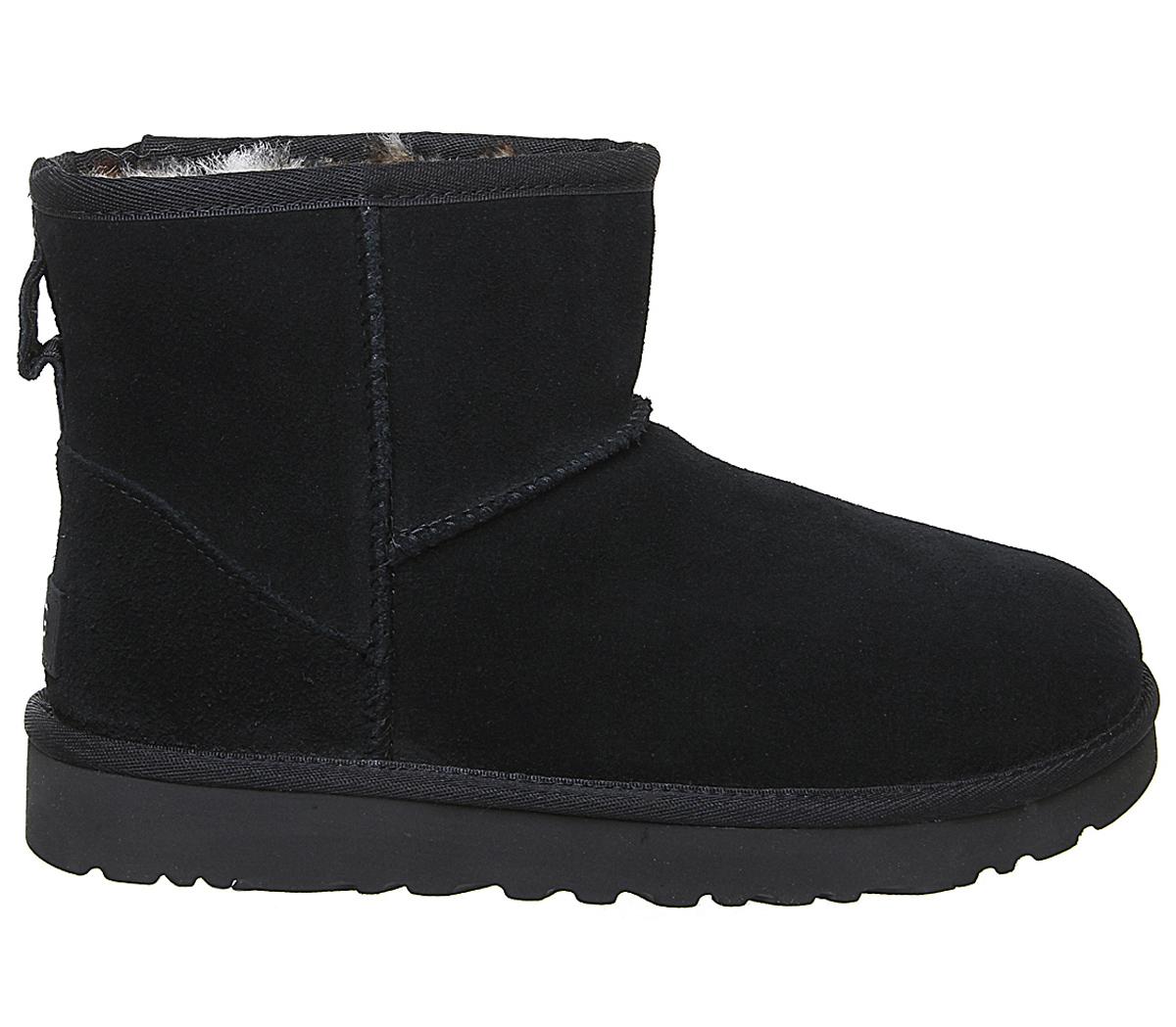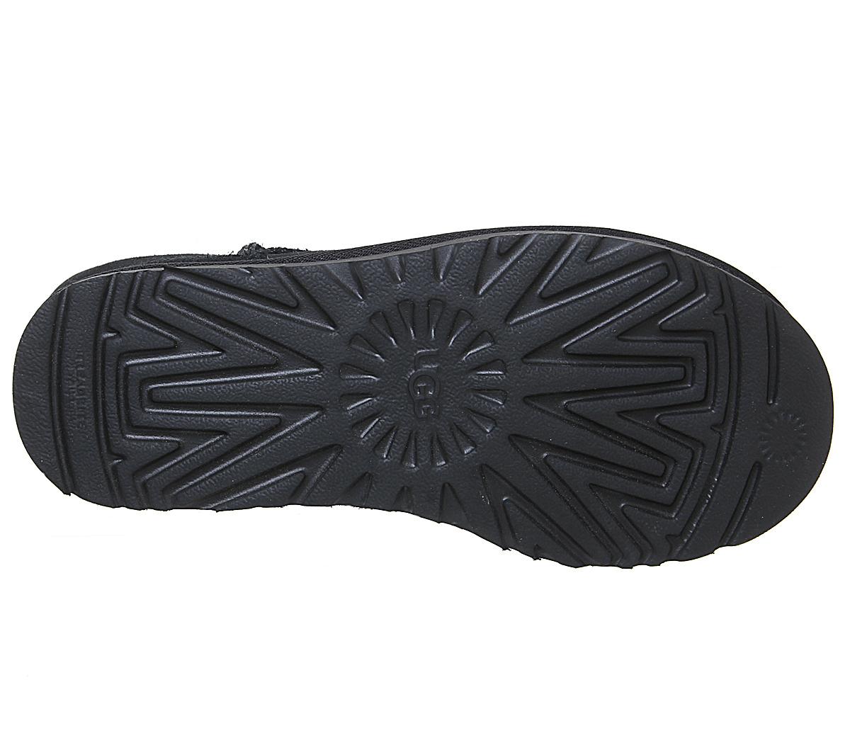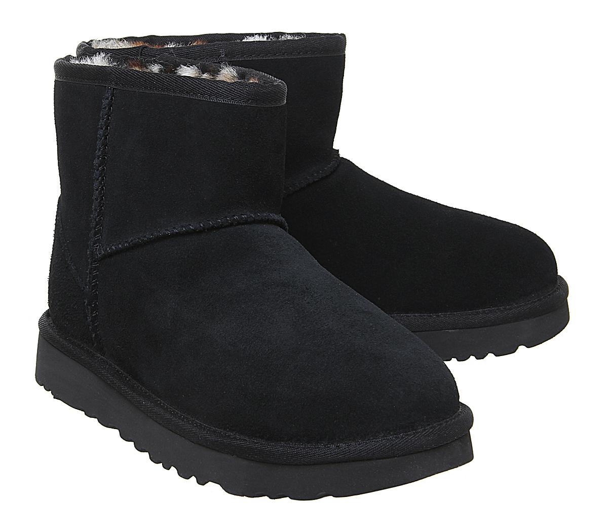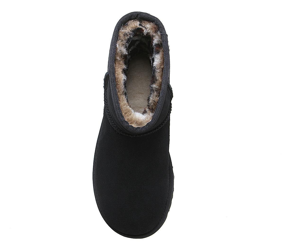Constructed with premium materials, the instantly recognisable Classic Mini now comes with a fun leopard printed sheepskin lining. Can be worn cuffed or non-cuffed! Featuring a pre-treated suede upper to repel water and stains as well as the Treadlite Ugg sole, providing even more comfort and traction than ever before. Finished with UGG suede branding on the back. This iteration features a black upper and colourful printed lining.