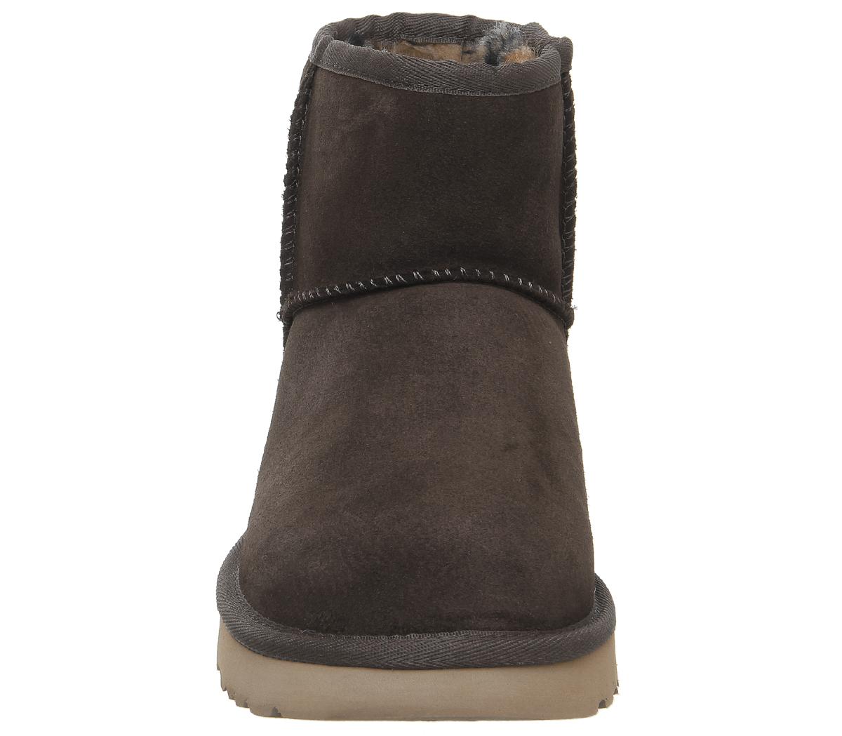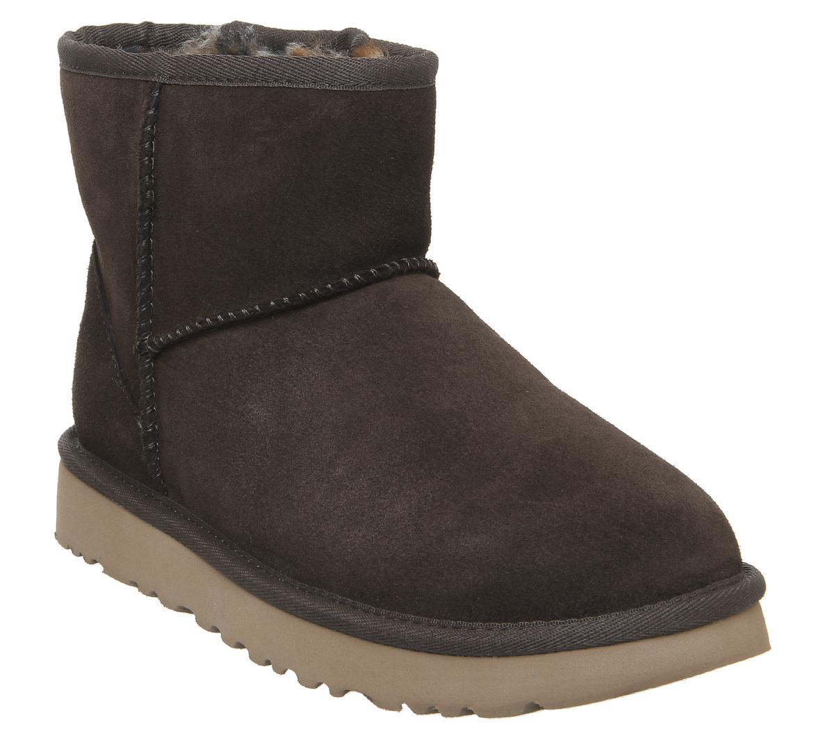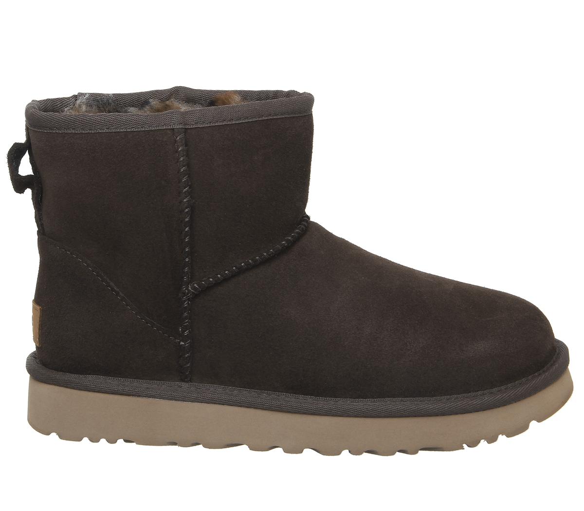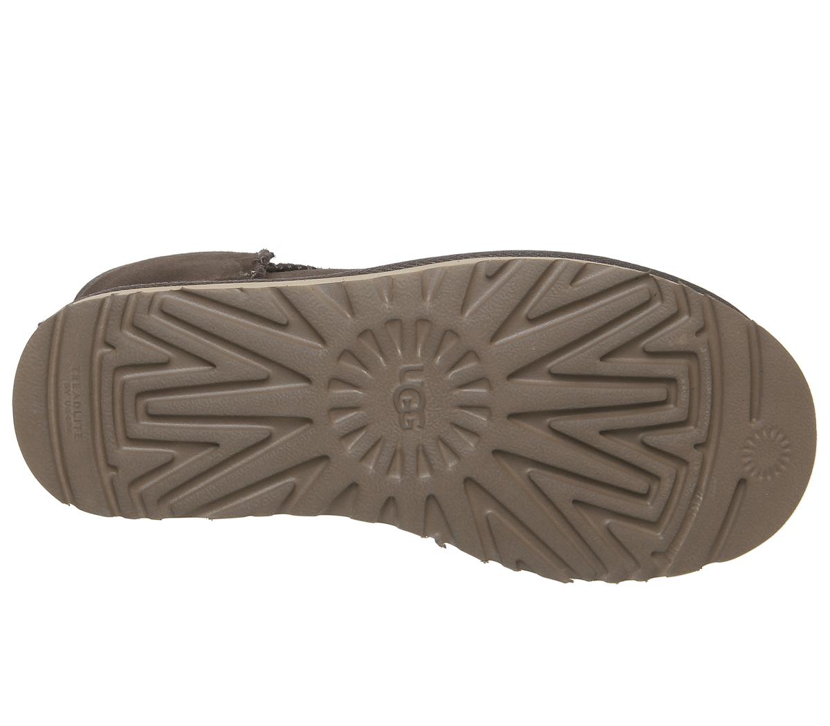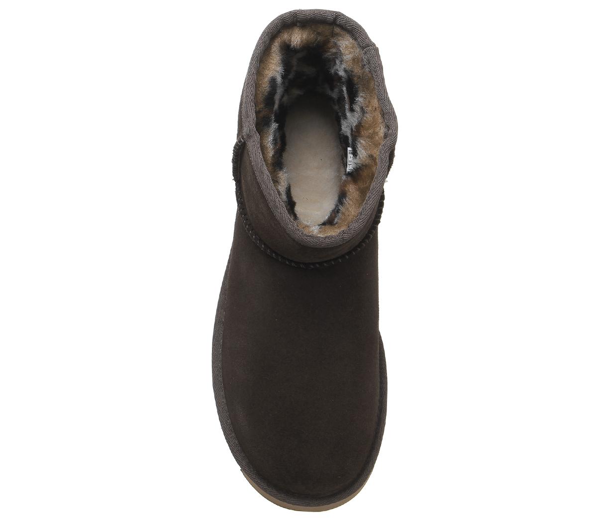 Constructed with premium materials, the instantly recognisable Classic Mini now comes with a fun hidden leopard printed sheepskin lining. Can be worn cuffed or non-cuffed! Featuring a pre-treated suede upper to repel water and stains, as well as the Treadlite Ugg sole, providing even more comfort and traction than ever before. Finished with UGG suede branding on the back. This iteration features a warm chocolate upper and colourful printed lining.