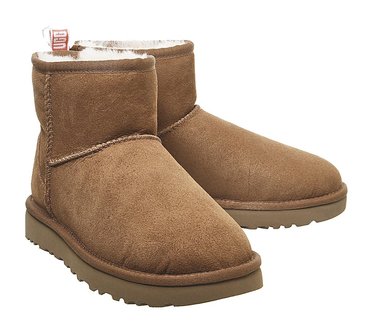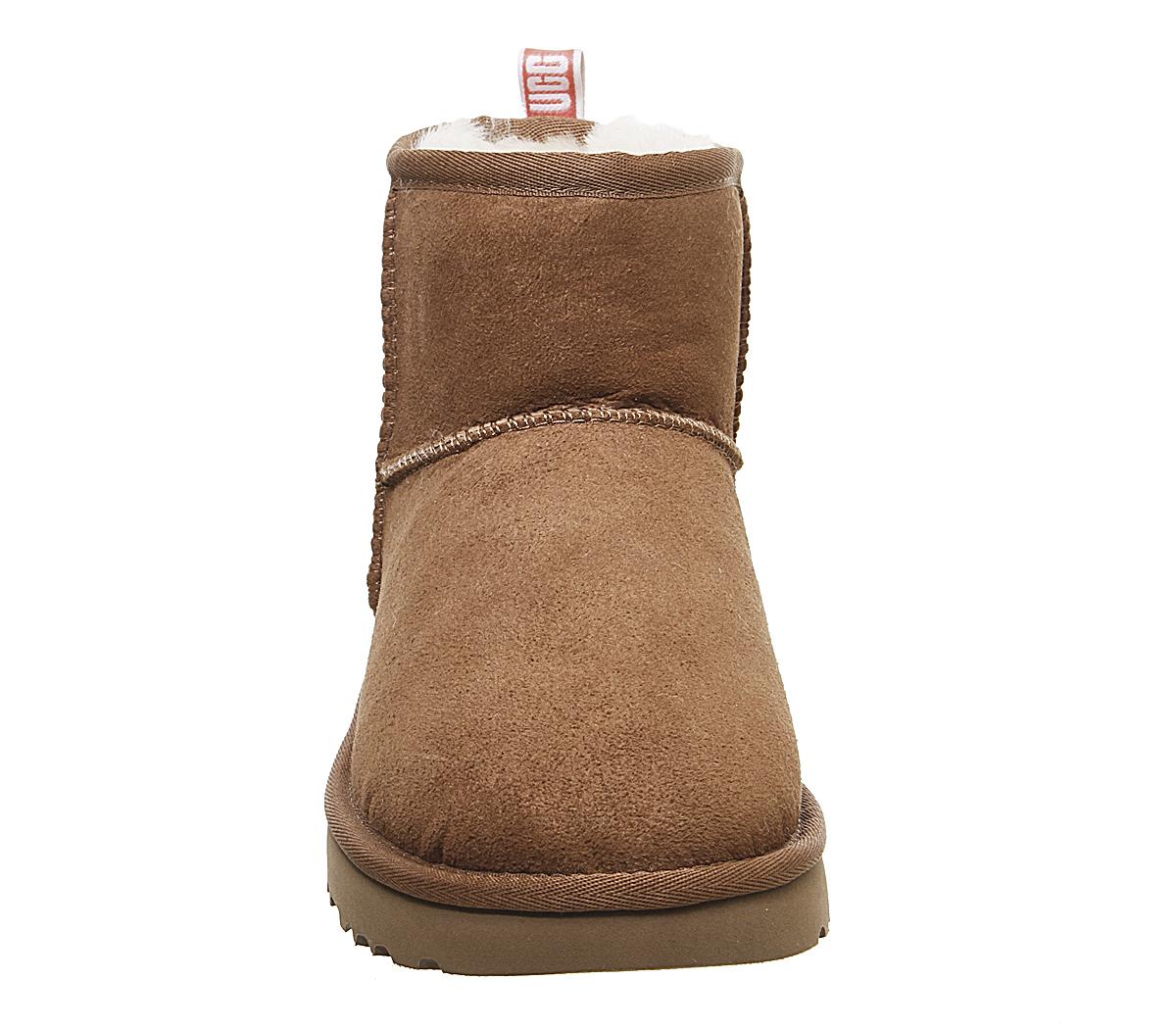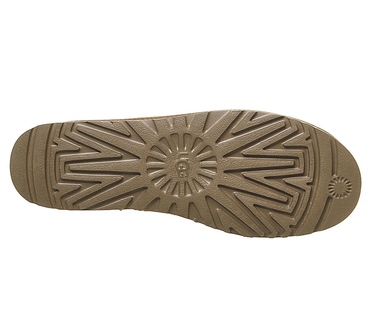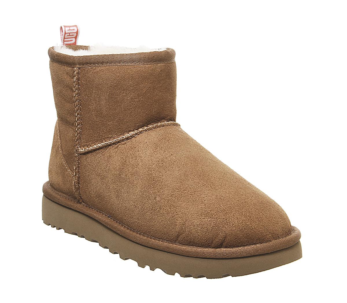 Constructed with premium materials, the instantly recognisable Classic Mini has been upgraded with a pre-treated upper to repel water and stains, as well as the Treadlite Ugg sole, providing even more comfort and traction than ever before! This iteration comes with a chestnut suede upper with a pink back heel detailing.