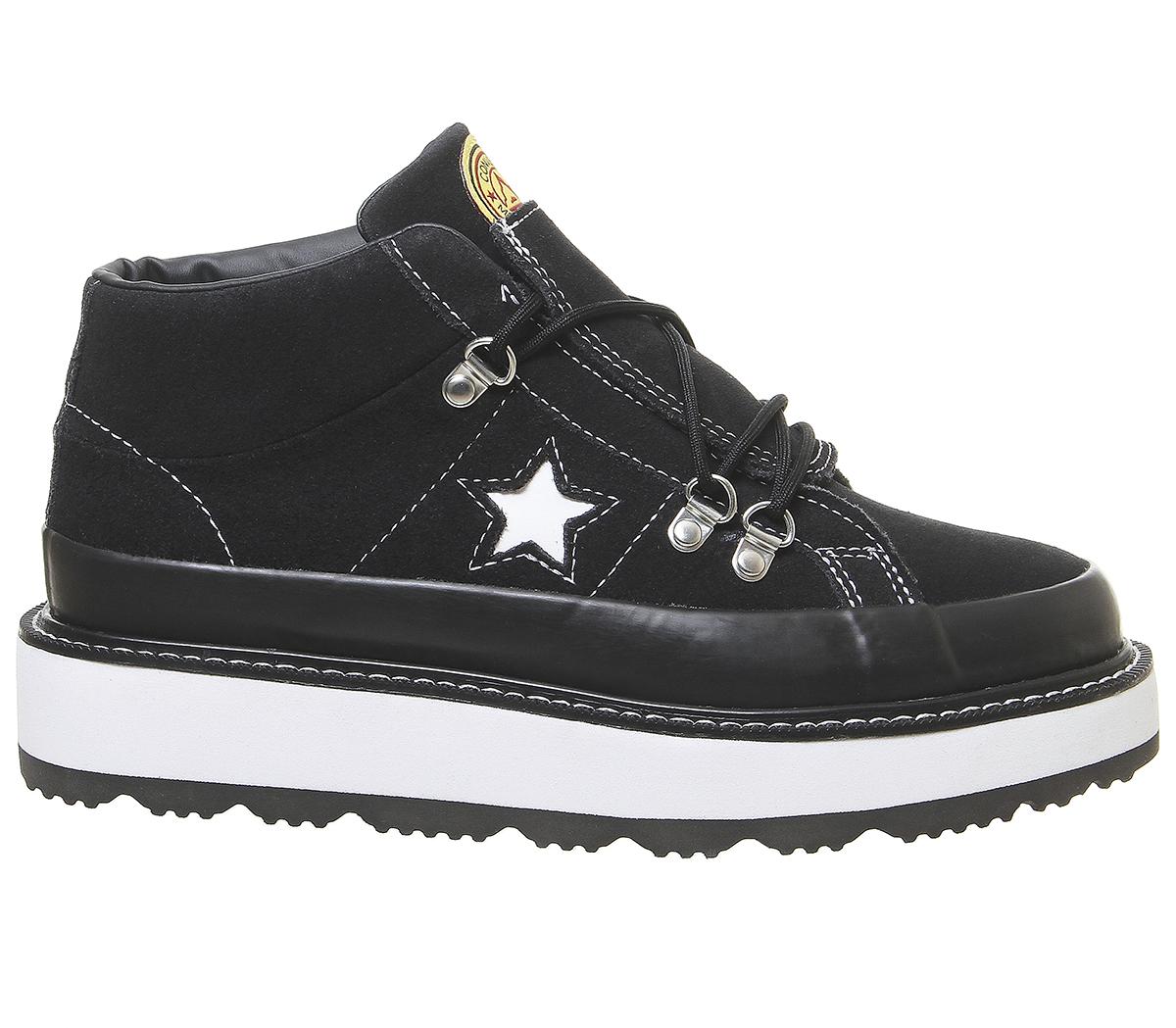 Reimagining the iconic one star silhouette with a bootie touch. Features suede uppers, fleece lining and a hiker inspired d-ring lacing system. Finished with a platform lugged sole