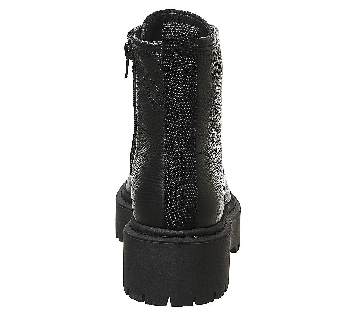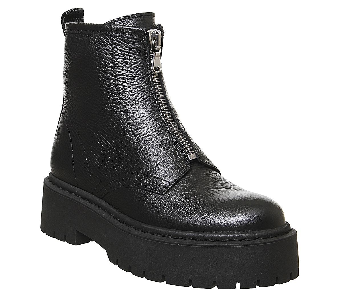 Chunky, 90s grunge inspired front zip boot. Featuring flatform rubber sole