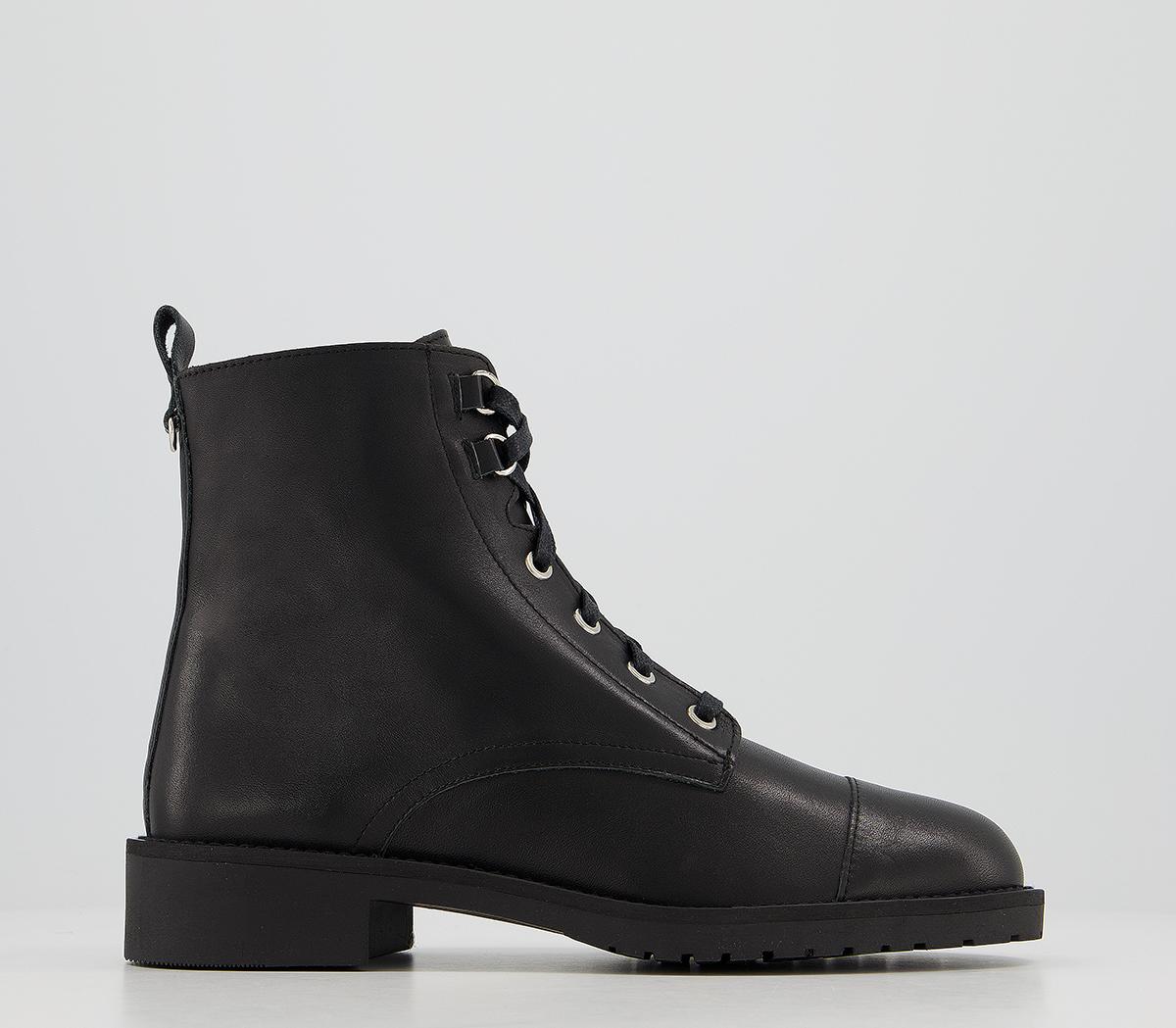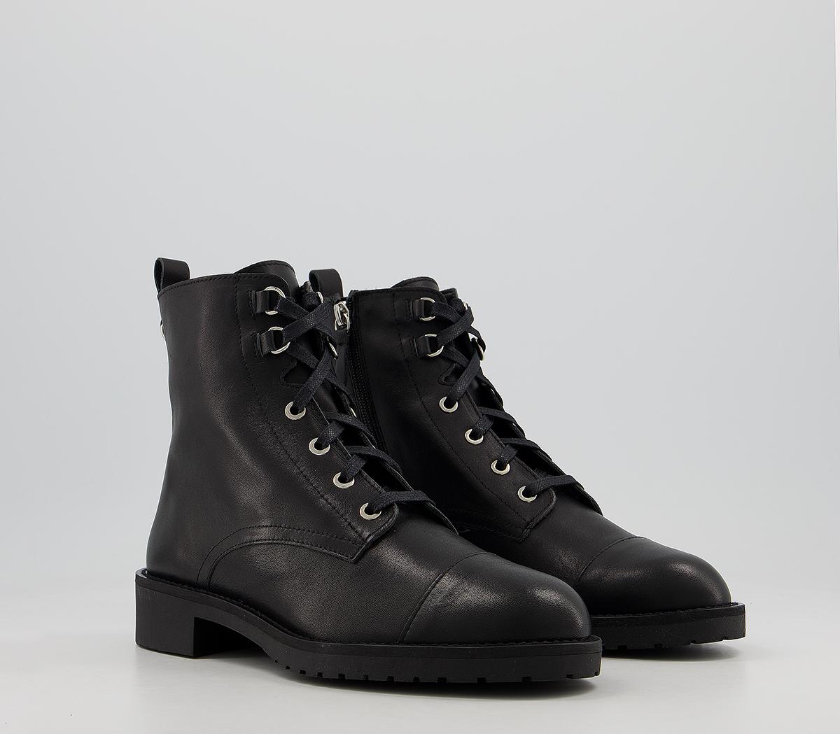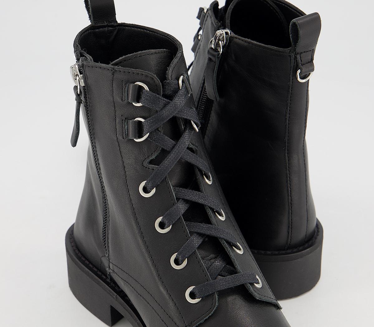 A simple lace up boot featuring hardware detailing. In a black colourway.