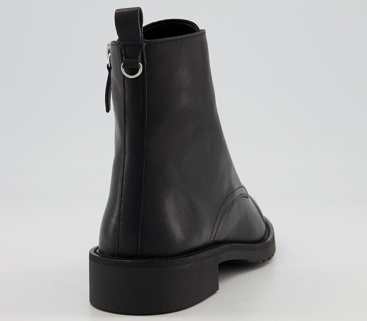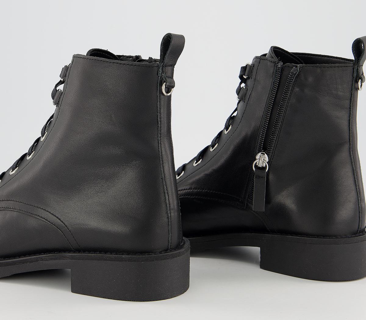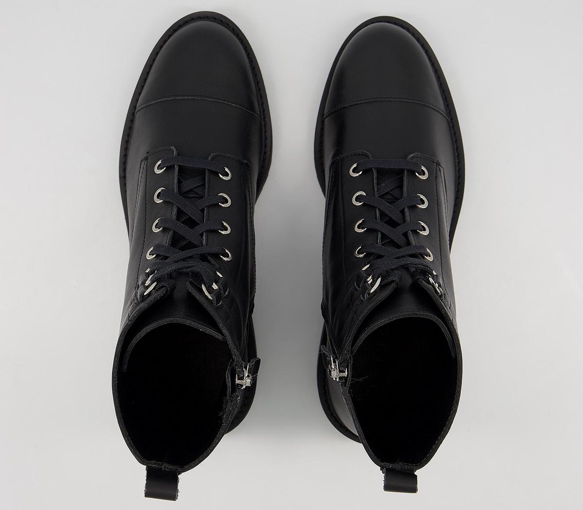 A simple lace up boot featuring hardware detailing. In a black colourway.