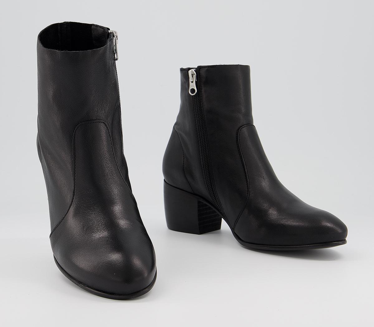 A casual ankle boot fit all year round. Featuring a side zip and a block heel with a black leather upper.