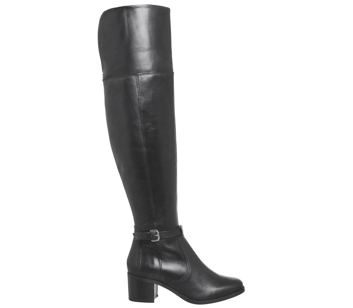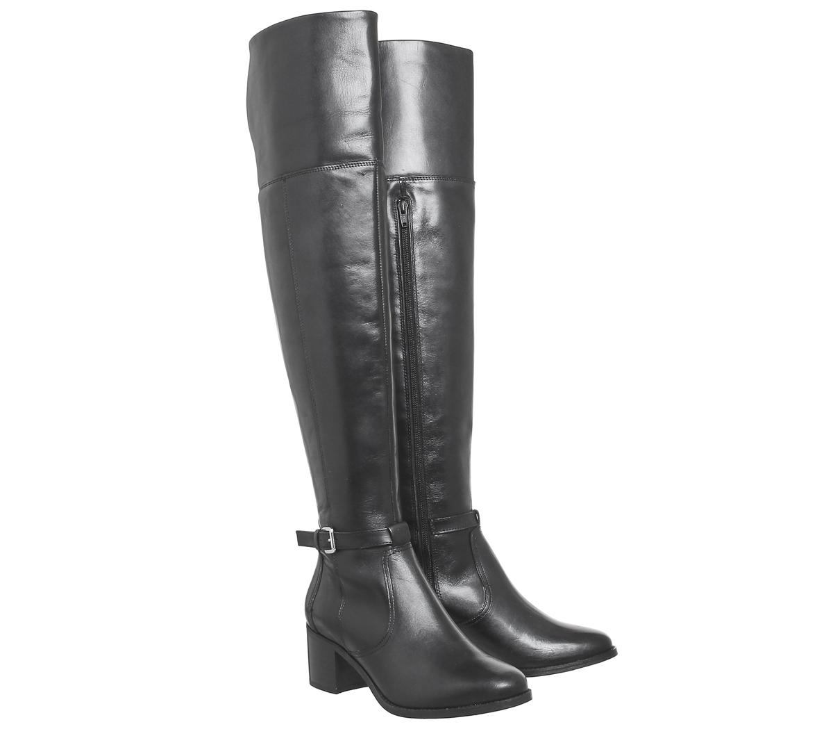 Walk tall in these leather, riding style over the knee boots with block heel.