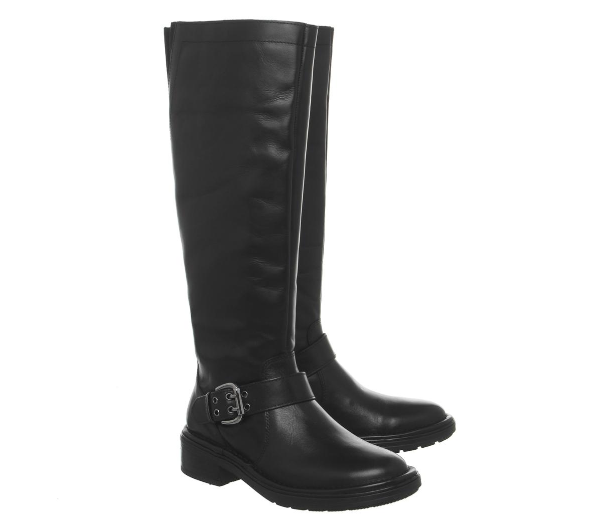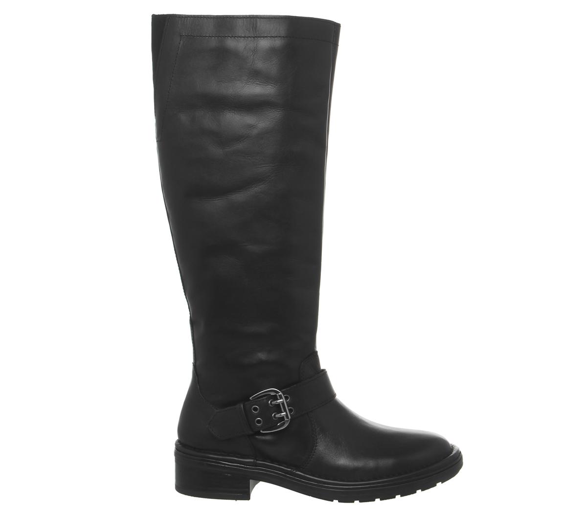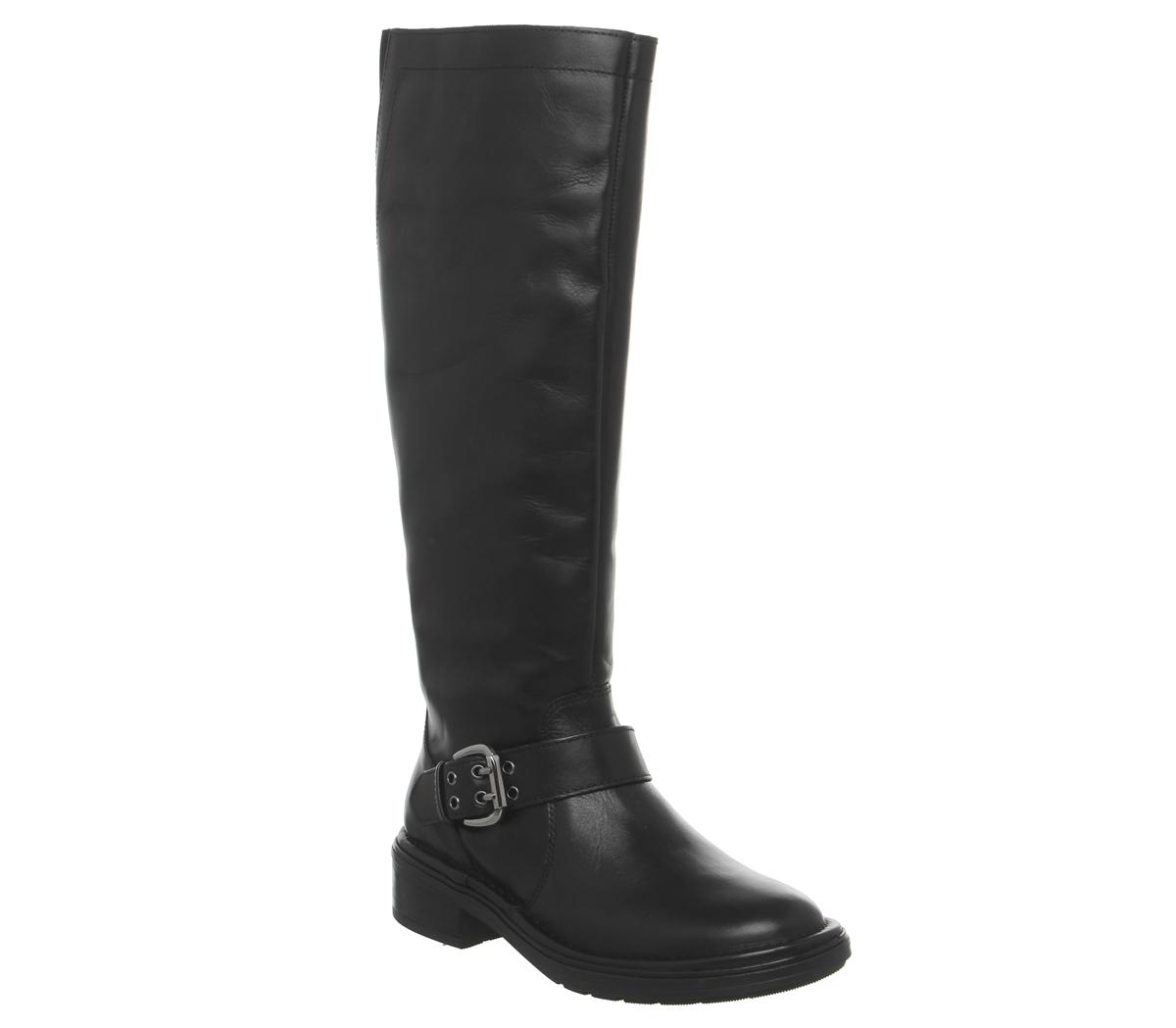This high profile casual boot goes perfectly with jeans or skirts- featuring a black leather upper with adjustable buckle detail.