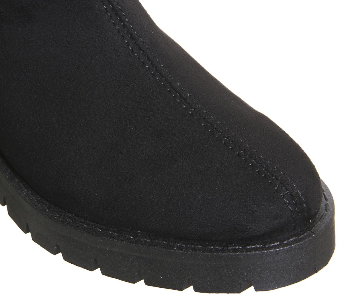 A chunky yet feminine design, leep warm in these long knee boots featuring a soft micro-suede upper with cleated rubber sole.