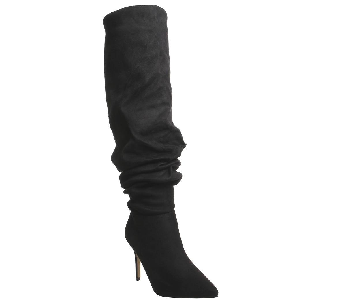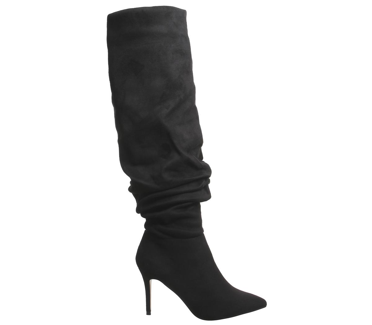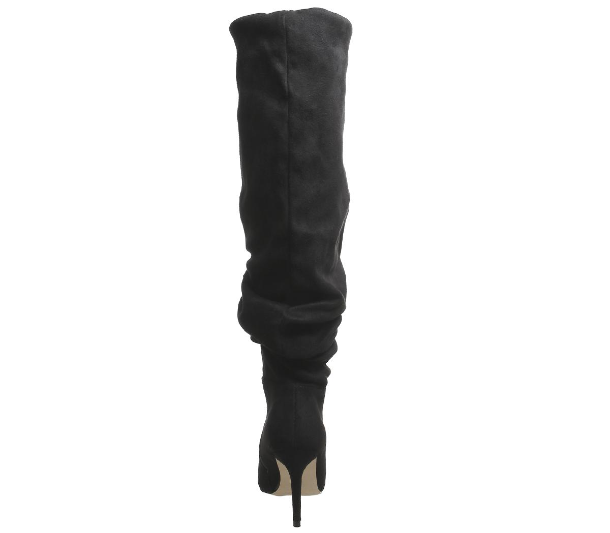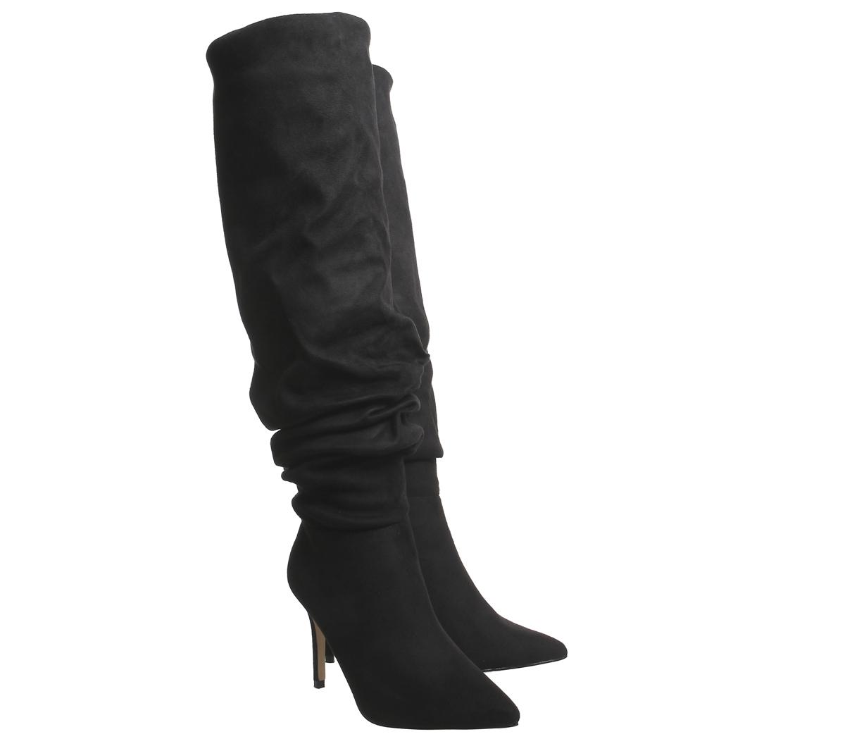 A must-have silhouette, these knee-high boots can you take from day to night. This black colourway features a slip on design, side zip and stiletto heel.
