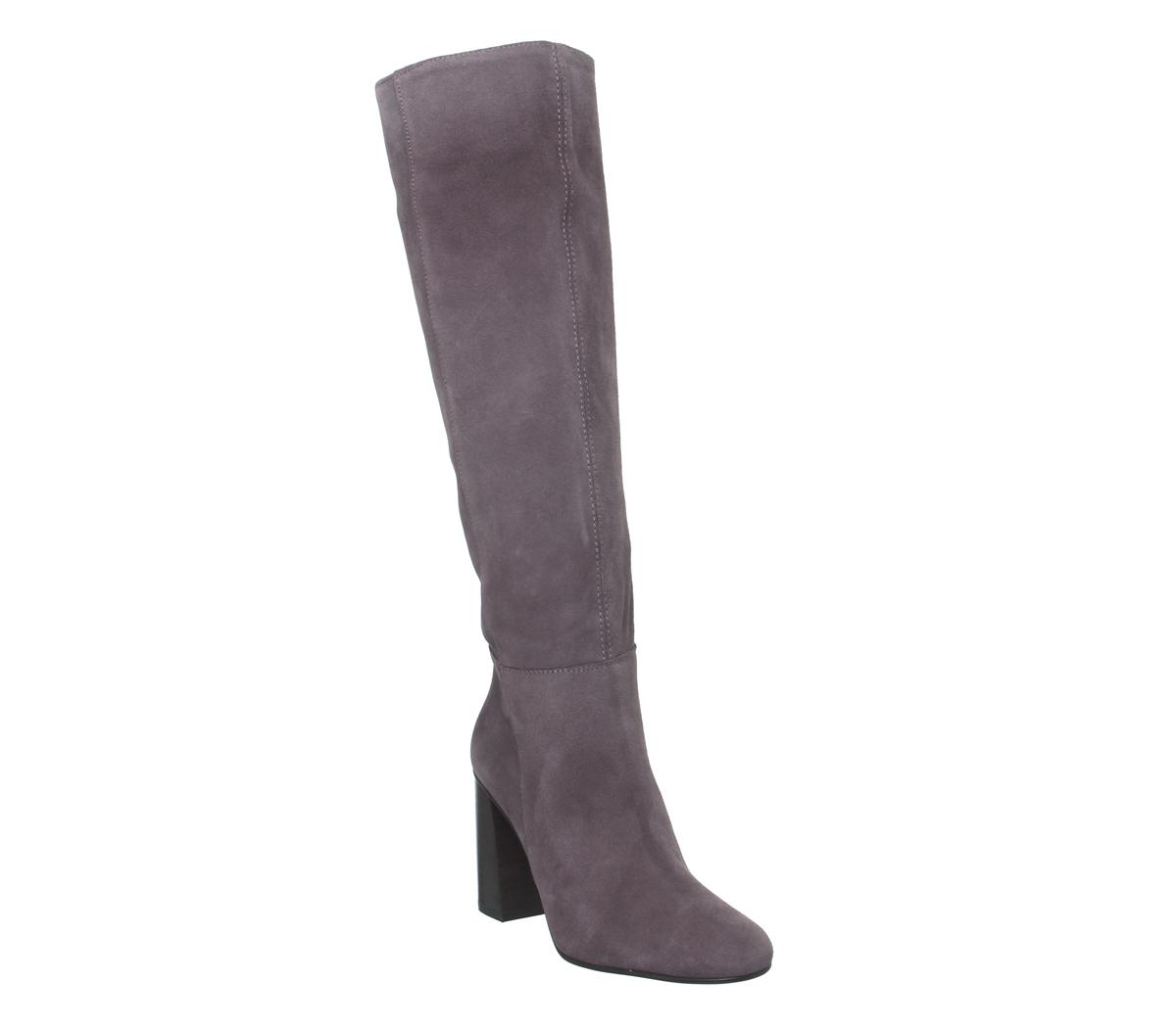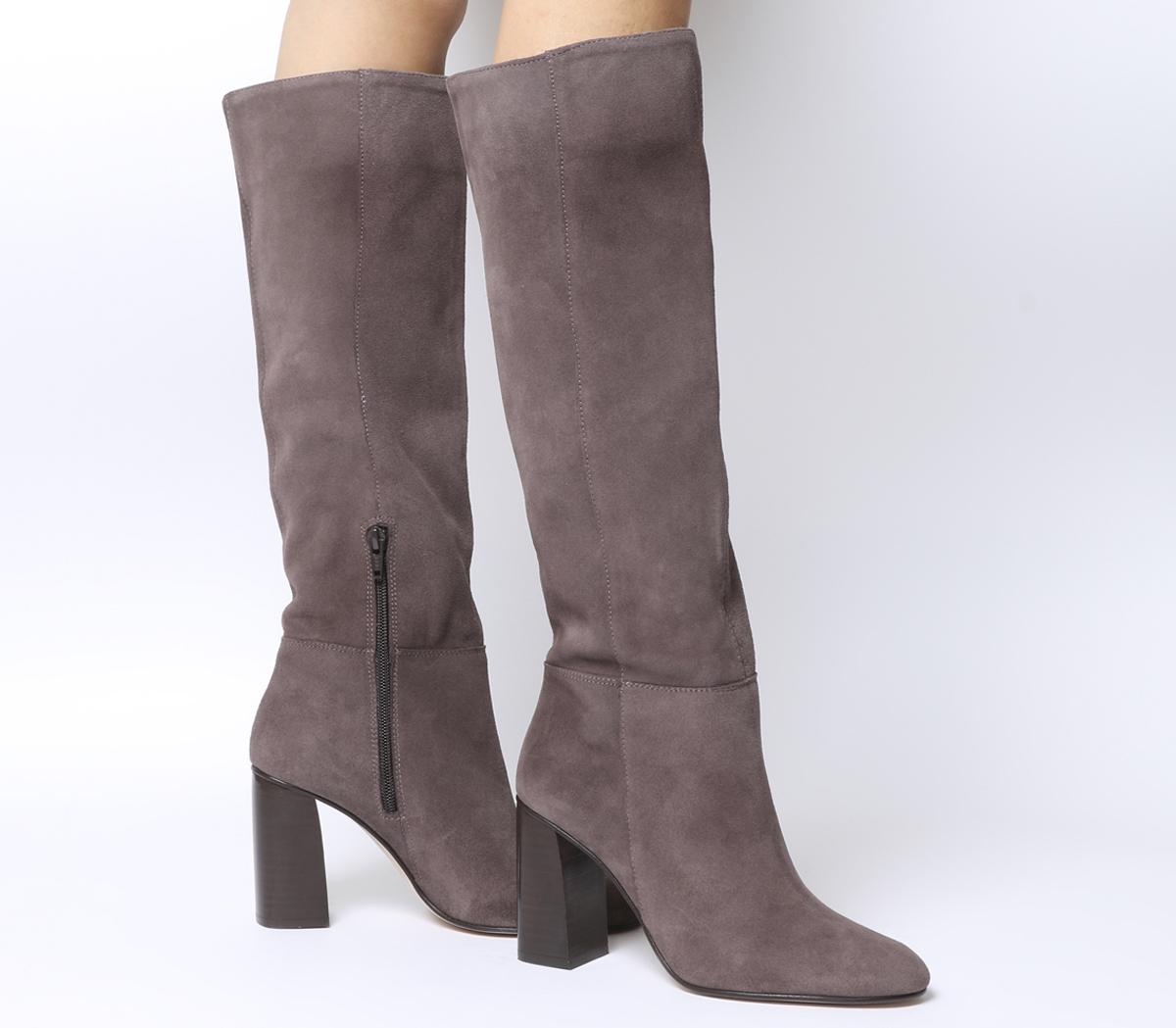 Classic, timeless silhouette for the colder months - these Koko knee boots elevate your outfits with a suede upper and chunky block heel. In a grey colourway