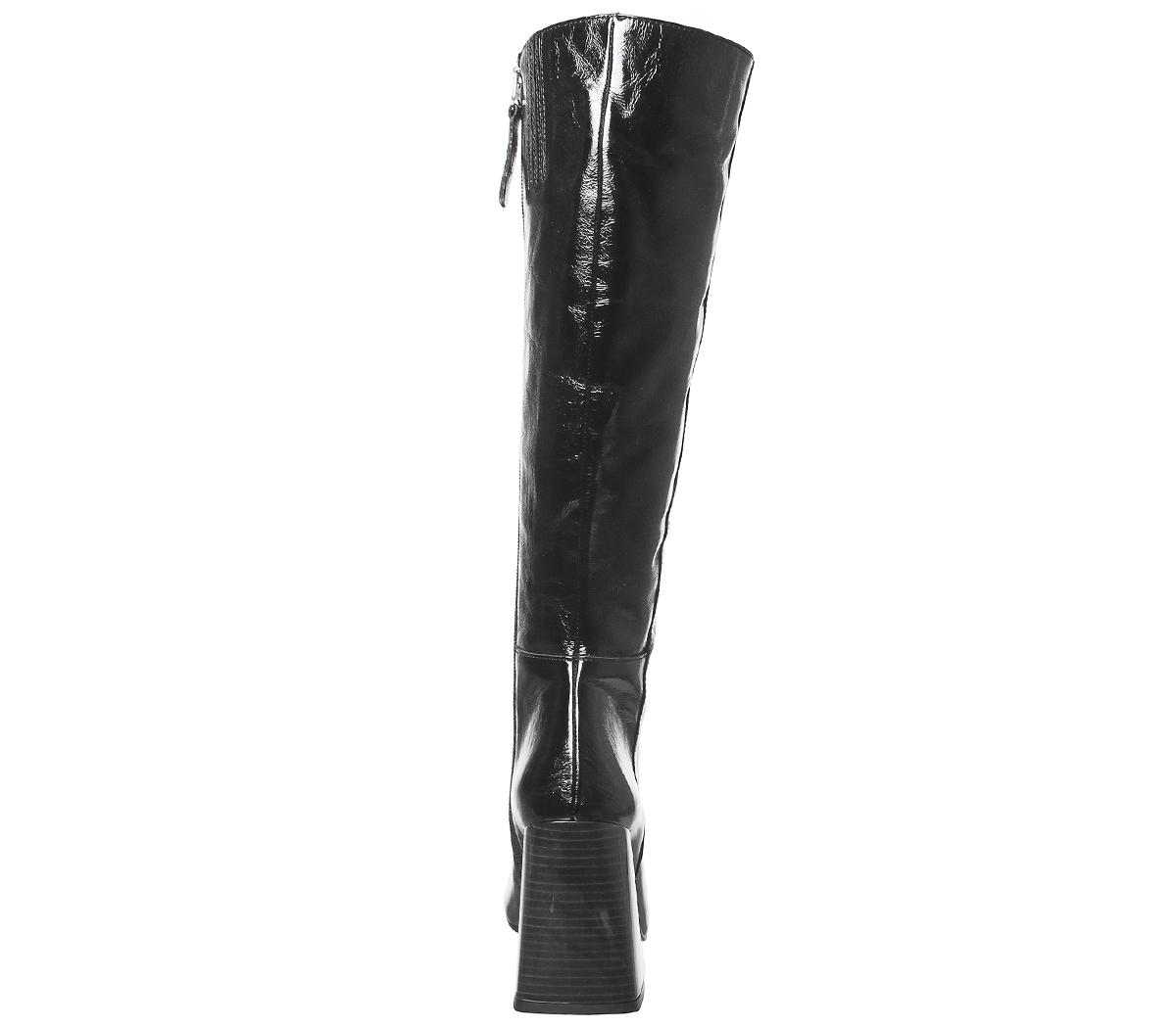 A knee high dream with these Koyote boots. Featuring all the trends, square toe, shiny patent upper, chunky feature heel and wide neck. In a classic black colourway