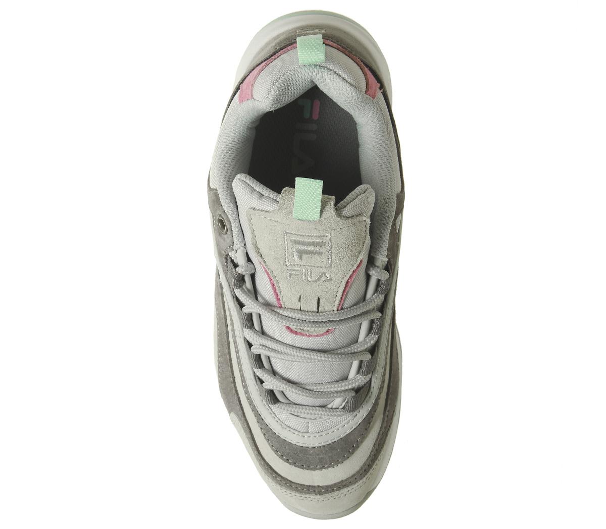 Fortifying the dad-trainer trend, Fila takes inspiration from the Disruptor II silhouette to bring you the Fila Ray. The Ray has a more subtle take on the chunky aesthetic with a smoother, less jagged sole. Featuring glacier grey suede/mesh uppers with aqua green colourpop detailing.