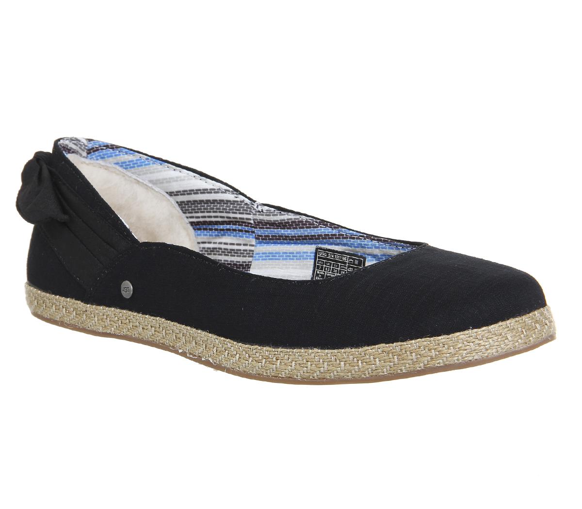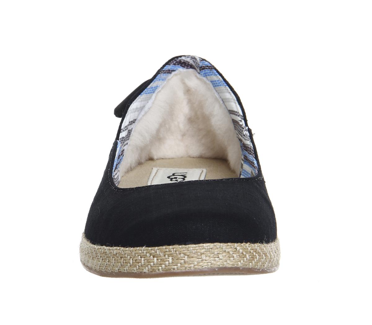 Perfect for the warm summer months, the Perrie Slip on by UGG Australia features a light canvas upper in black with a rubber outsole and woven detailing. There is also a soft shearling lining around the heel of the shoe.