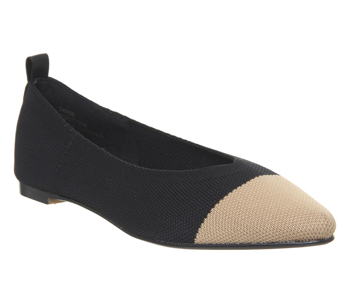 Super comfy pointed slip-on flats with a quirky knitted upper. With a contrasting toe detailing.