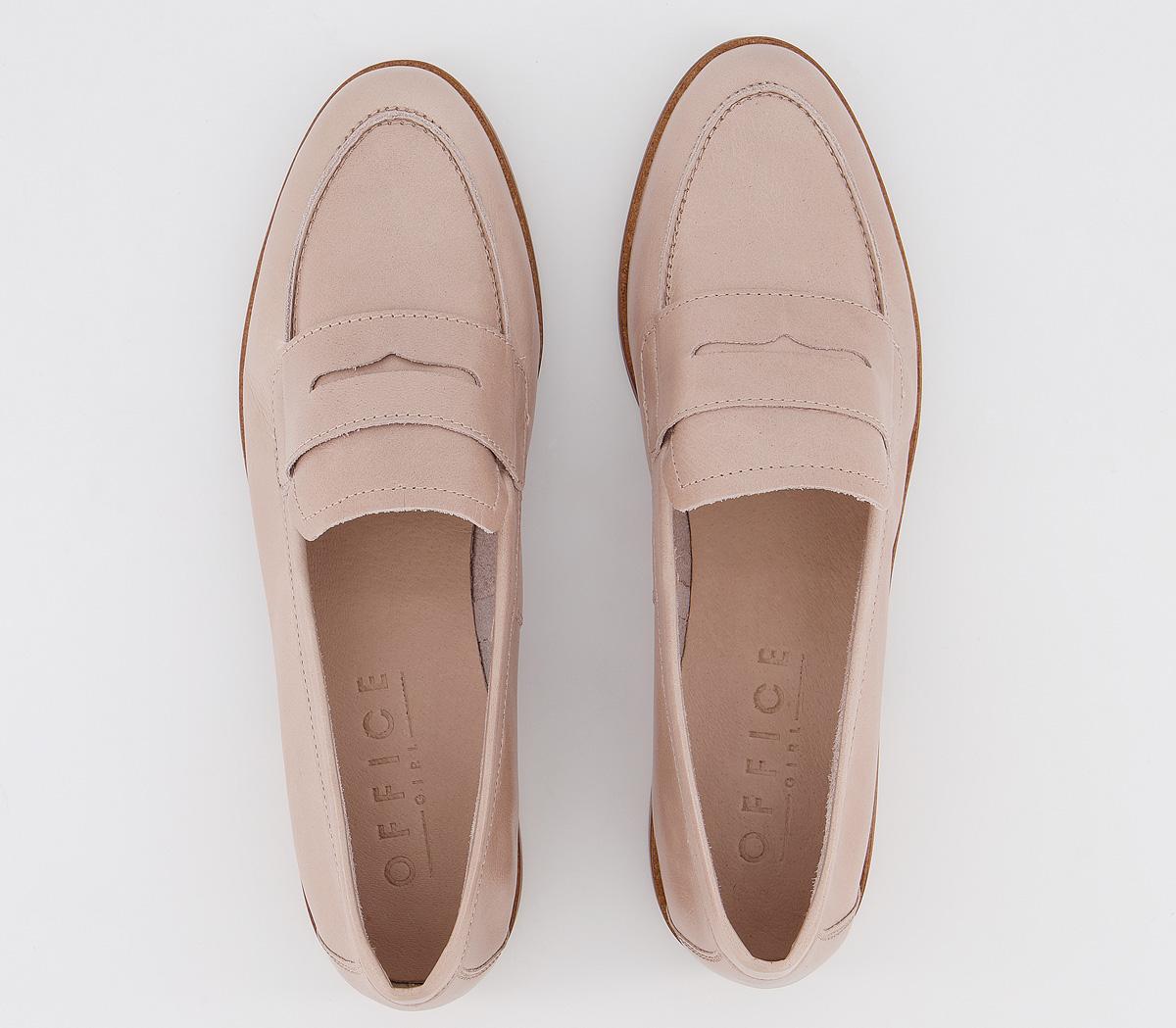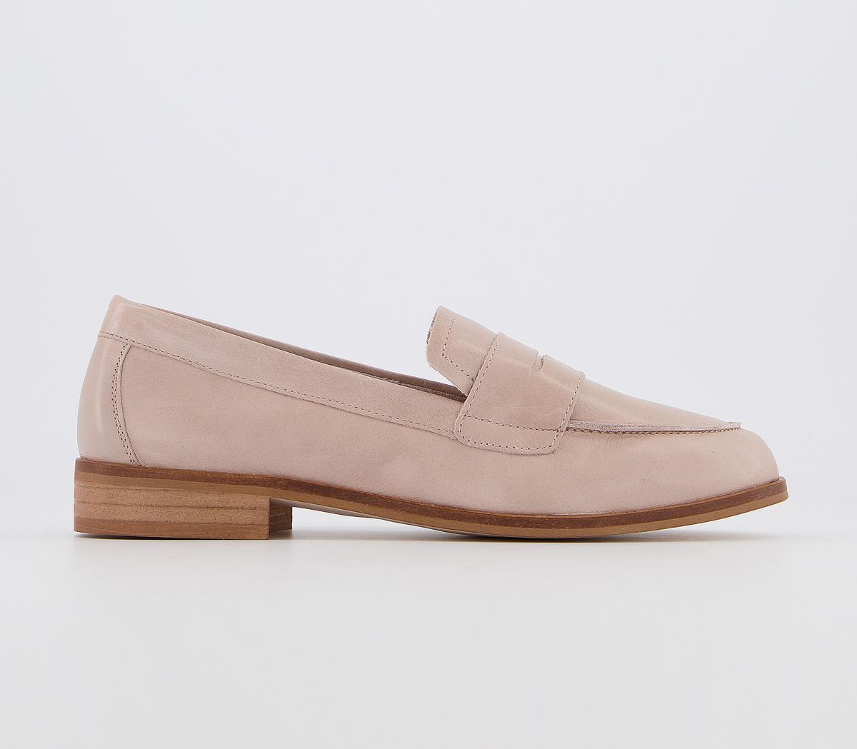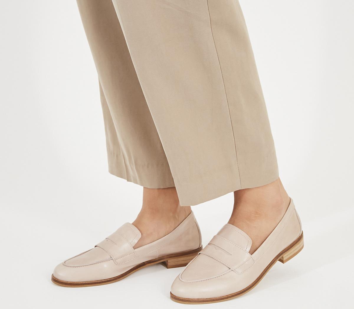 A classic loafer silhouette featuring soft leather uppers, cushioned insole and penny detailing. This iteration comes in a beautiful tonal beige nude colourway