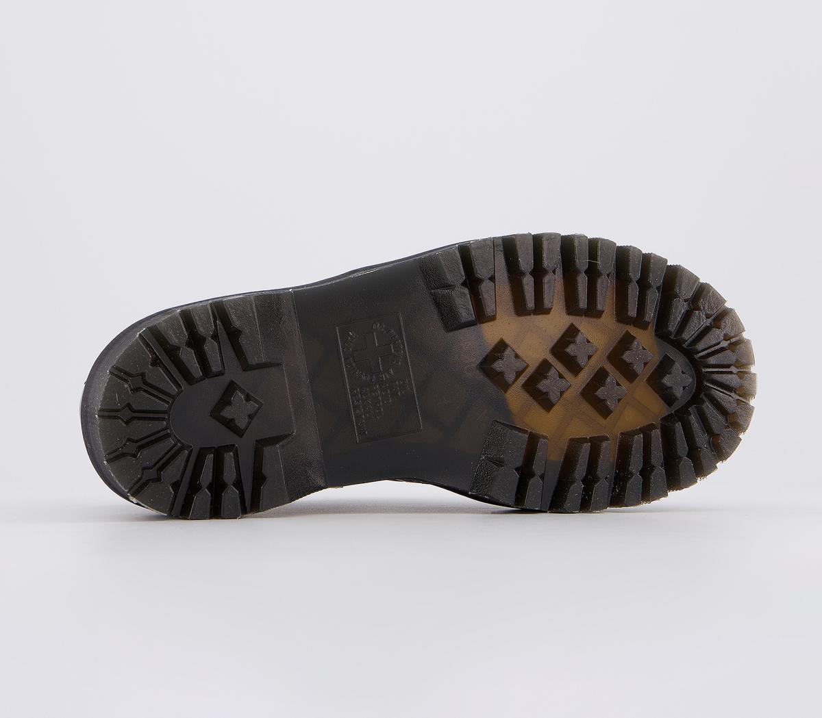 The sister to the Molly boot, the Holly retains the classic Dr Marten attitude. Featuring an elevated chunky rubber soles, yellow stitching and lace up fastening. This iteration comes with a smooth black leather upper.