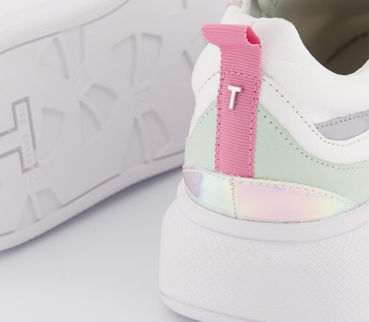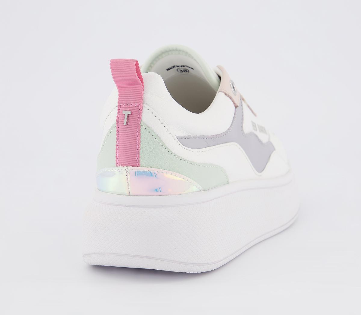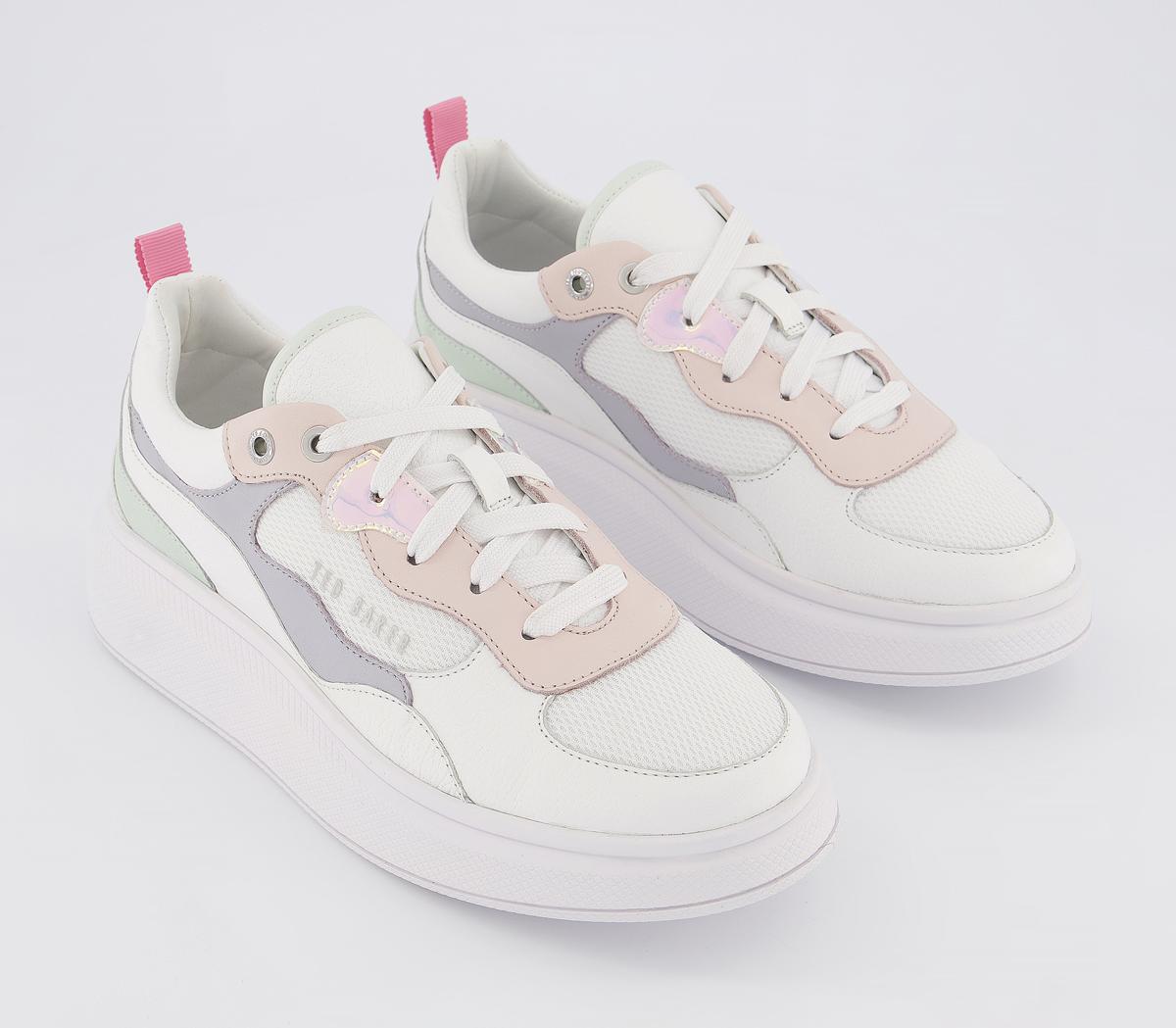 A sporty chunkier design with a colourblocking leather and mesh upper. In a summer ready white and pastel colourway. Finished with branded details throughout.