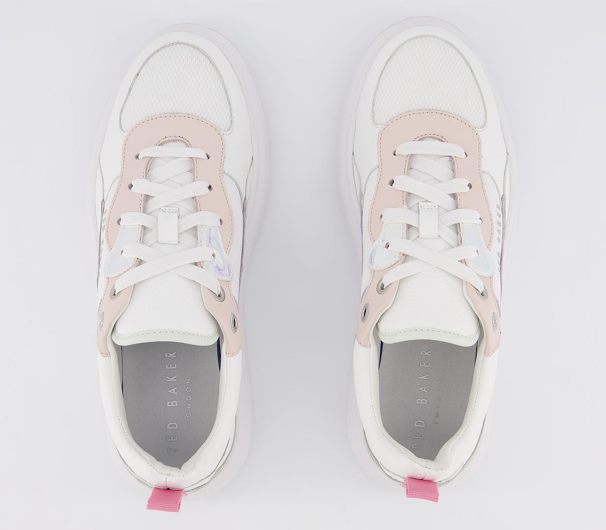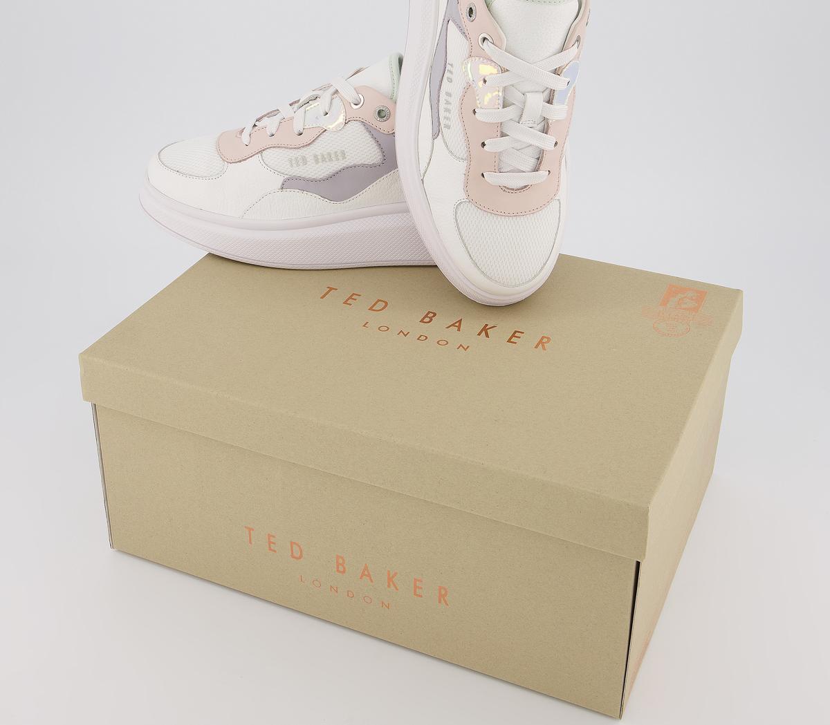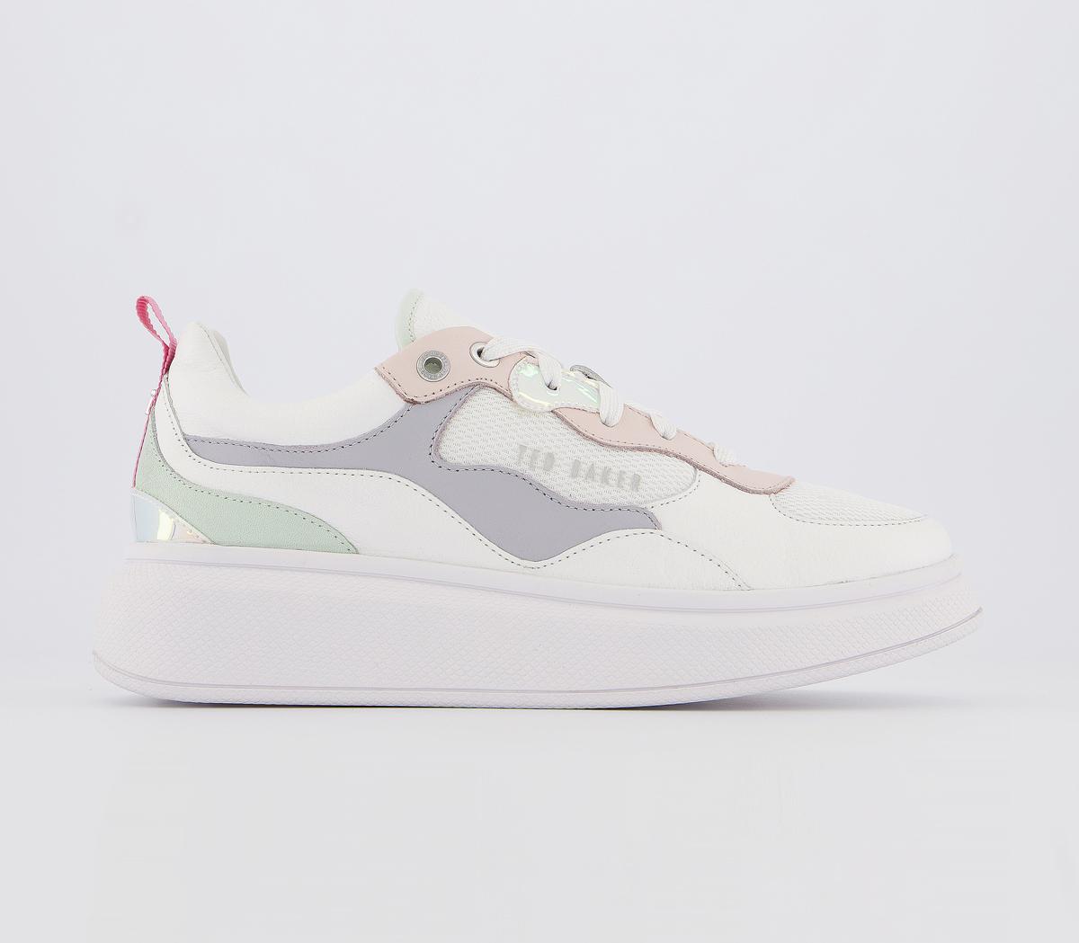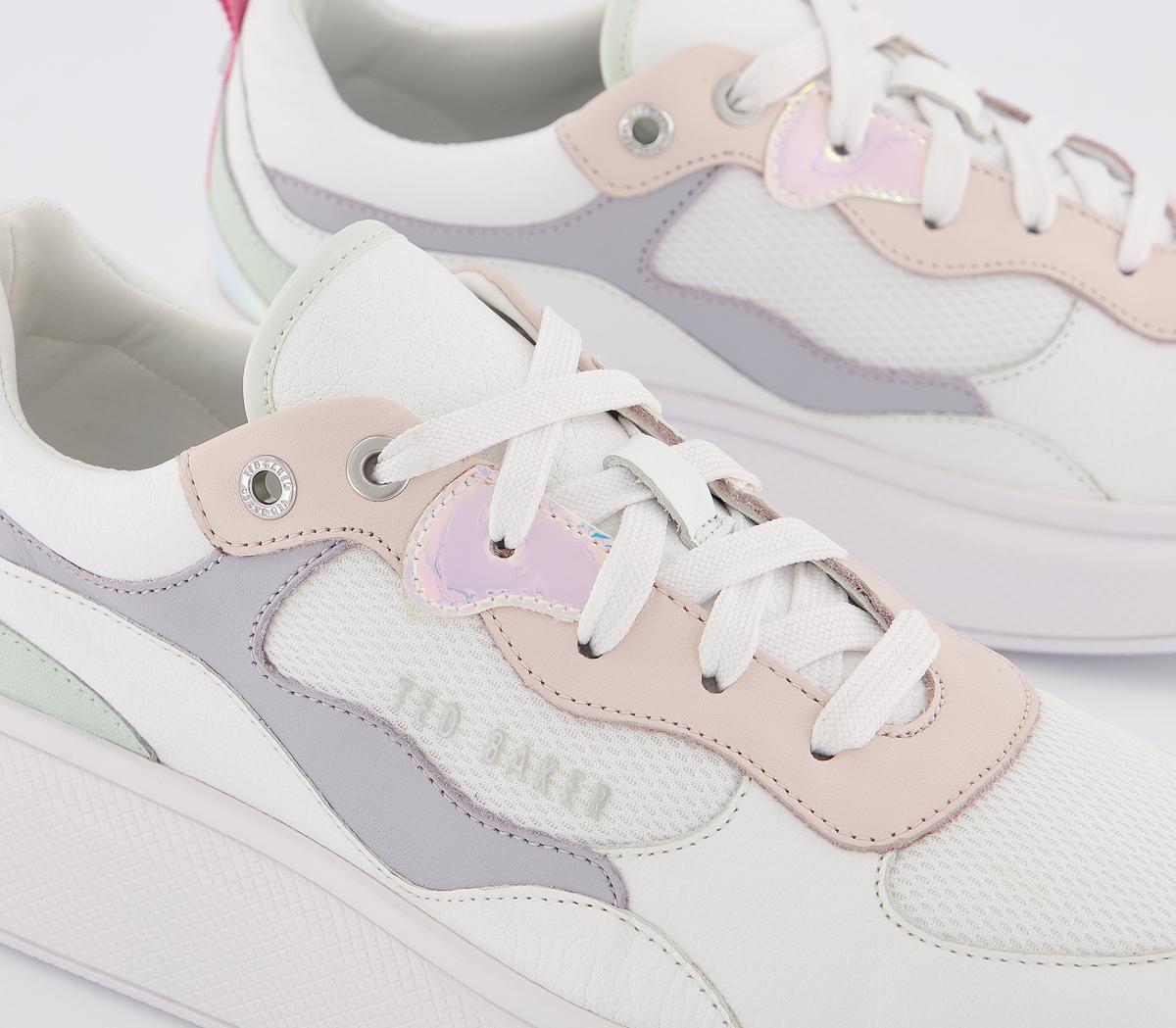 A sporty chunkier design with a colourblocking leather and mesh upper. In a summer ready white and pastel colourway. Finished with branded details throughout.