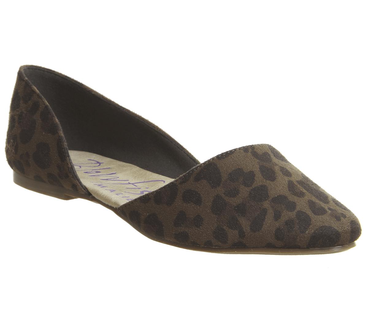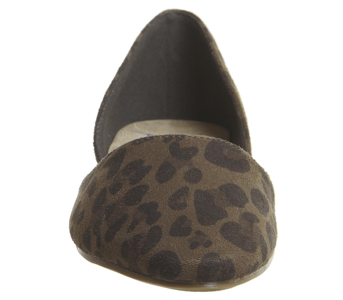 Fun leopard print ballerina flats with a pointed toe and rubber sole.