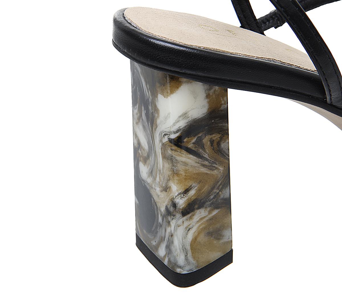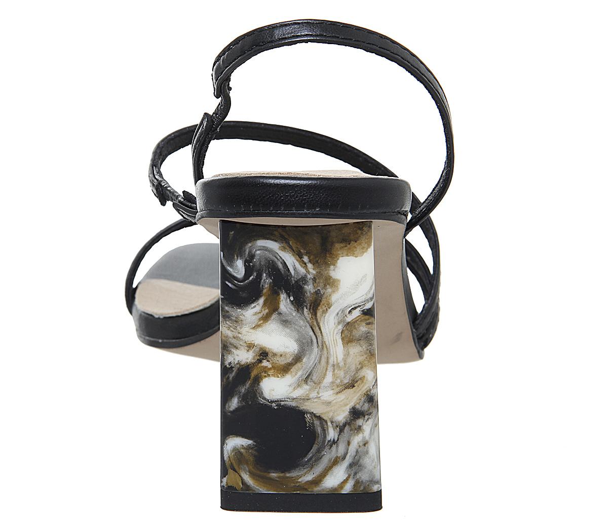 Cool, chic little heeled sandals- perfect for dressing up any outfit. Black leather uppers accompanied by a beautiful printed heel.