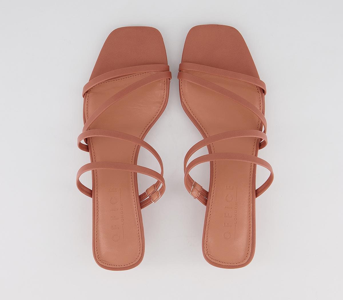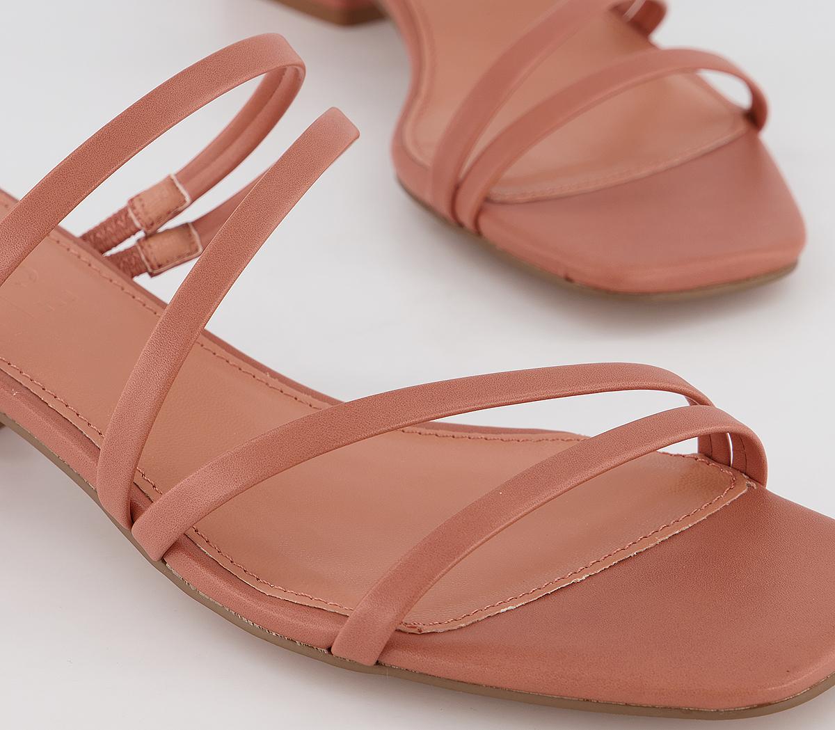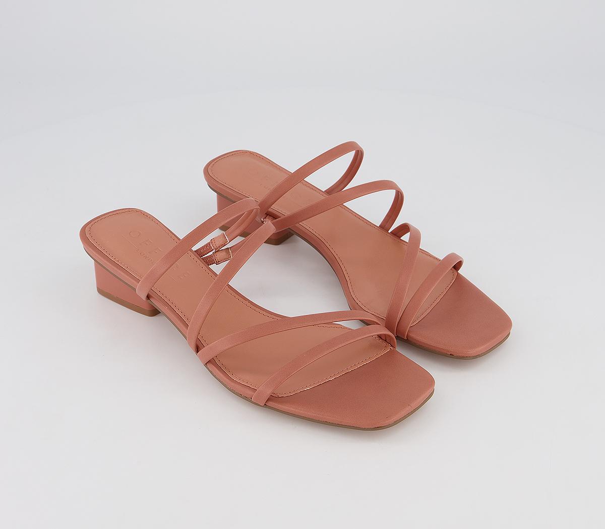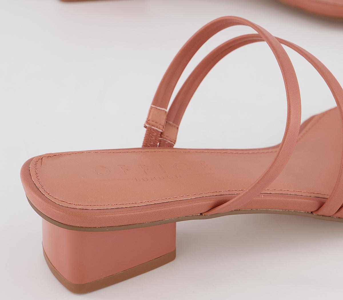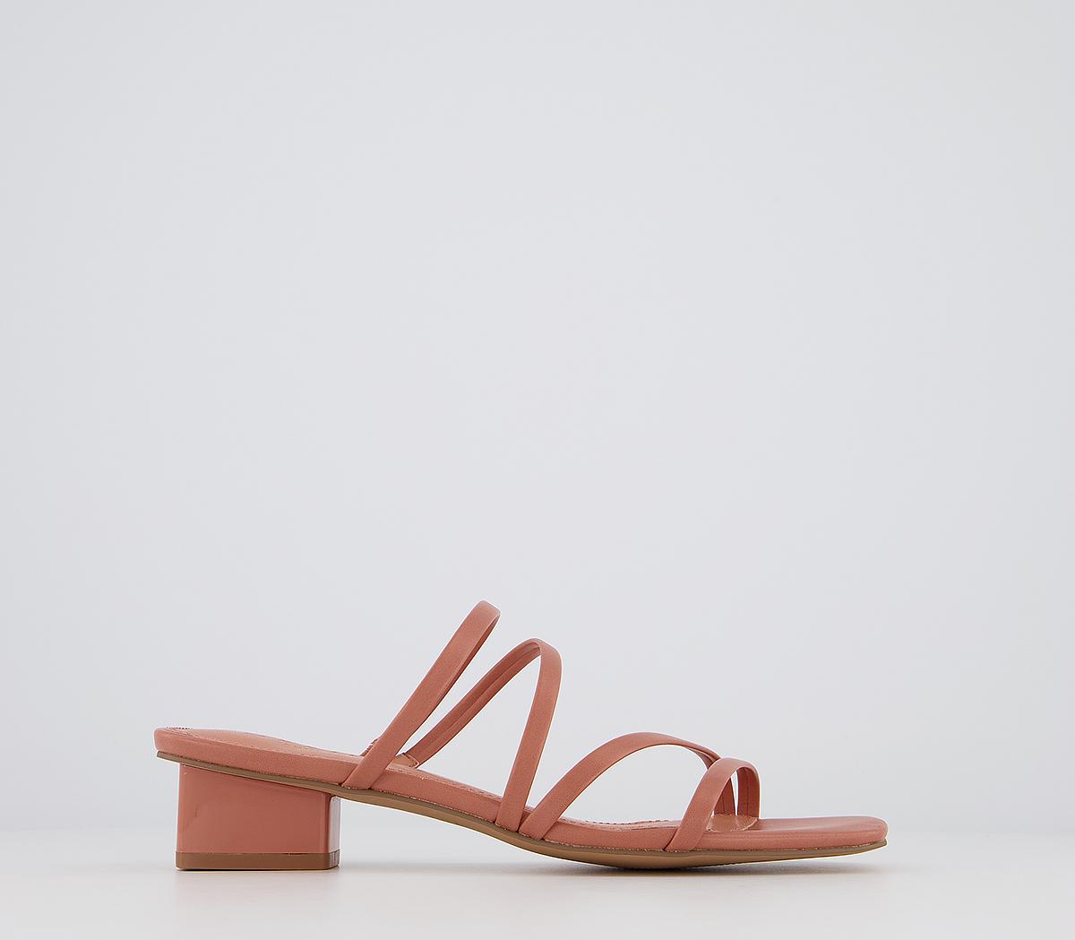 Simple but stylish pink mule midheels that feature a square toe, asymmetric straps and a block heel.