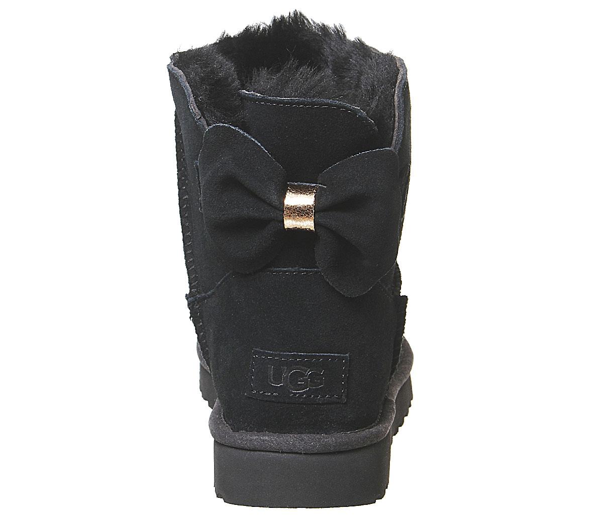 Constructed with premium materials, the instantly recognisable Classic Mini has been reimagined with a back bow detailing. Featuring a pre-treated upper to repel water and stains, as well as the Treadlite Ugg sole, providing even more comfort and traction than ever before! This iteration comes with a black suede upper with a metallic detailing.