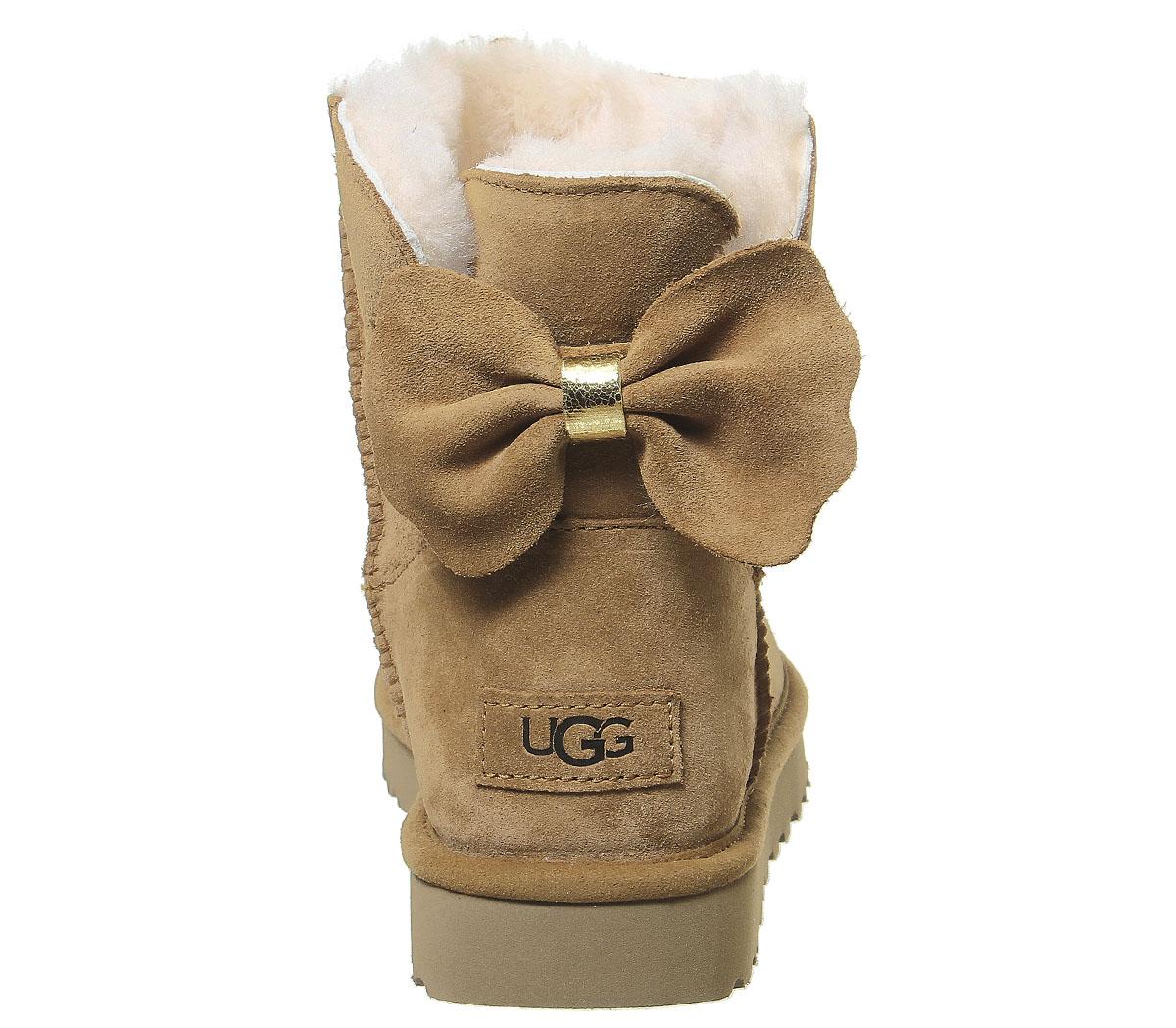Constructed with premium materials, the instantly recognisable Classic Mini has been reimagined with a back bow detailing. Featuring a pre-treated upper to repel water and stains, as well as the Treadlite Ugg sole, providing even more comfort and traction than ever before! This iteration comes with a chestnut suede upper with a metallic detailing.