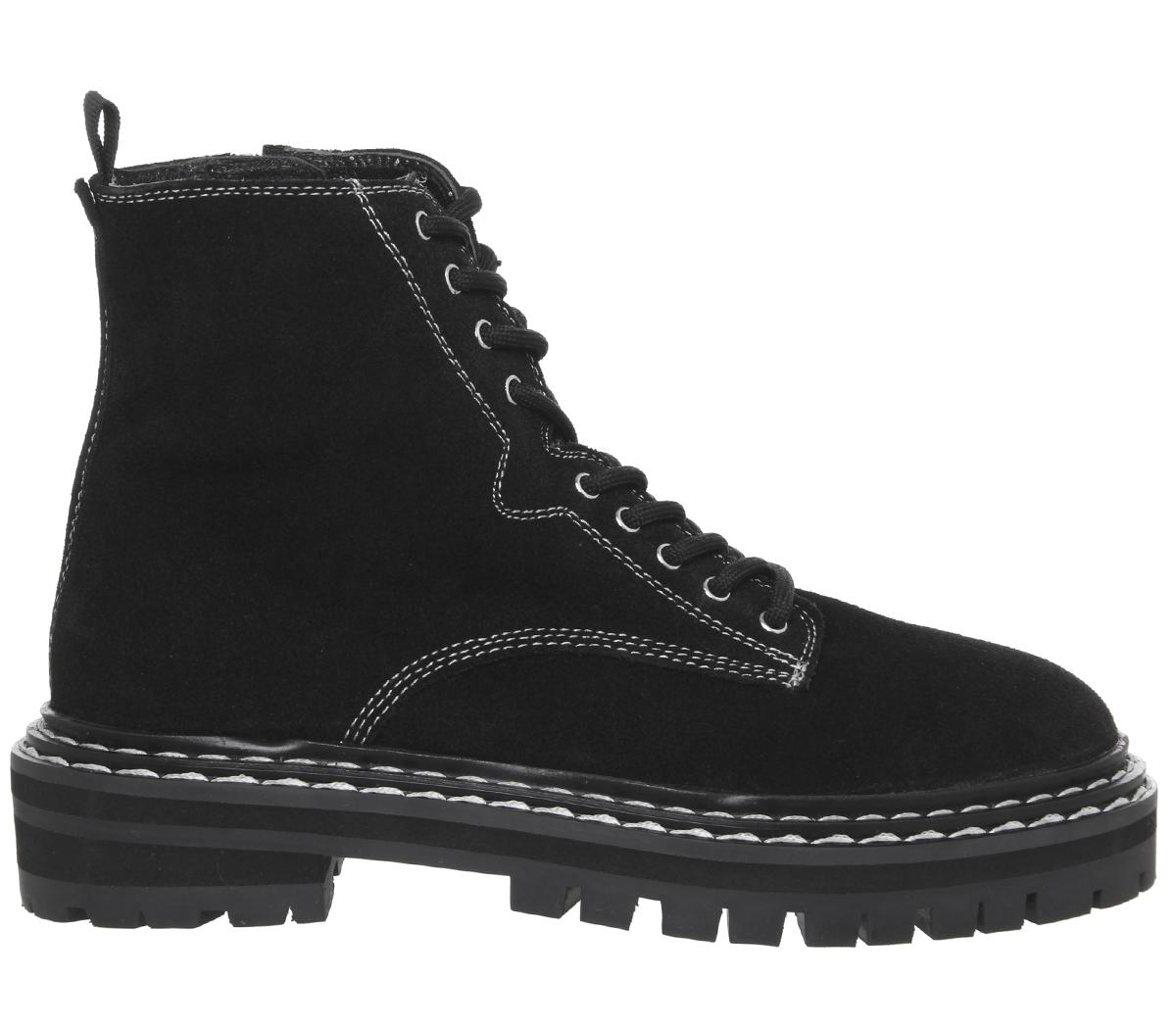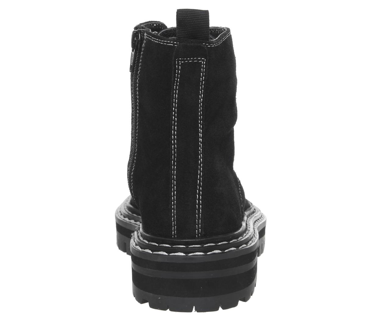 Adding that special touch to your day to day outfits. Rock these Alphabet boots with a skirt or jeans. Featuring a suede upper, with double stitched rand detail, zip fastening and chunky cleated sole.