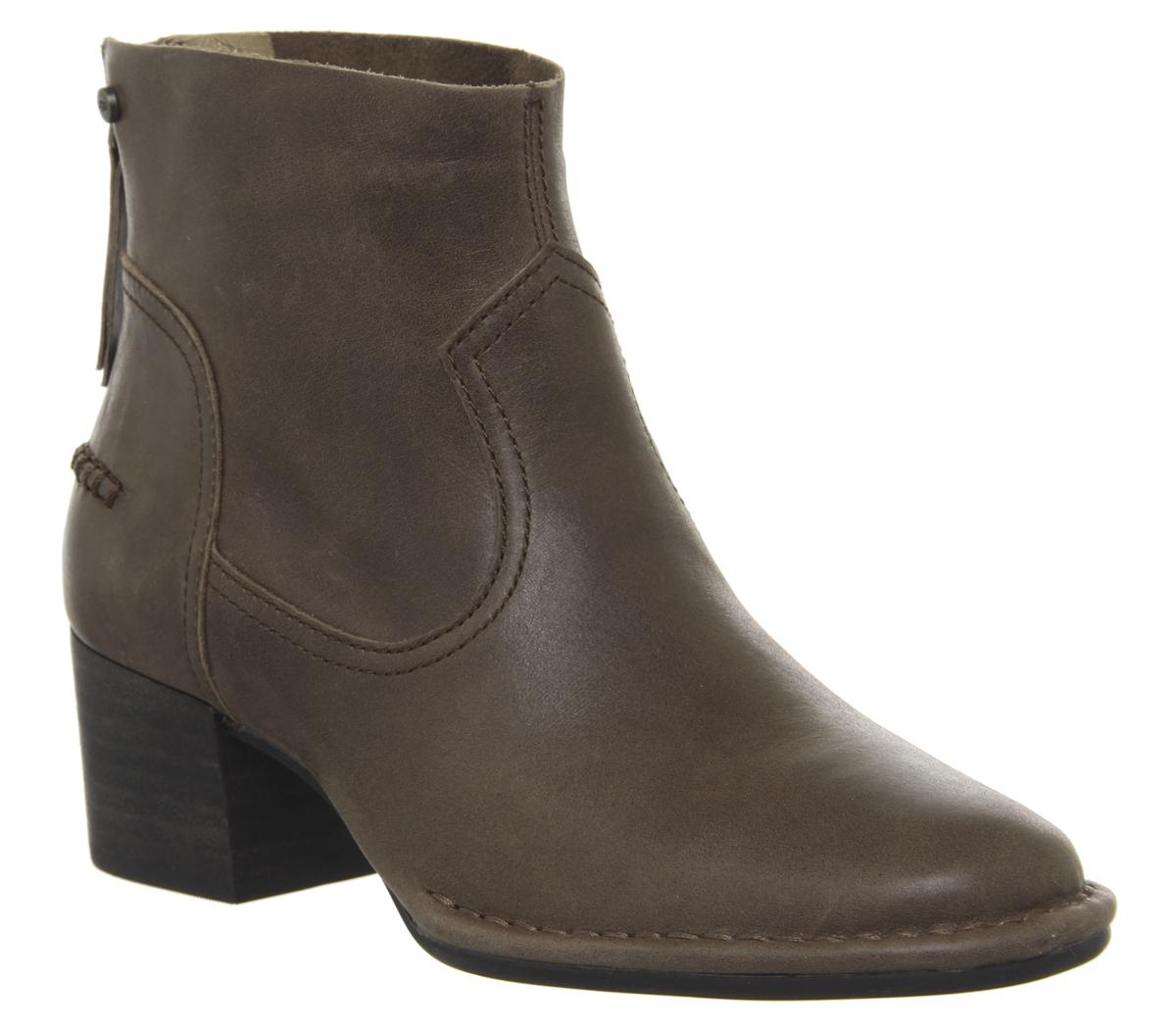 An autumnal boot featuring smooth yet soft brown 'coconut shell' leather uppers, back zip, and cushioned footbed.