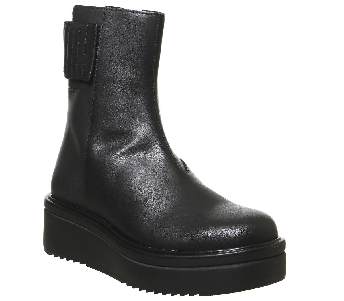 Modern take on the 90's grunge era. The Tara is a wearable statement and this iteration comes with textured collar, chunky flatform and slight wedge heel. Finished with an inner zip