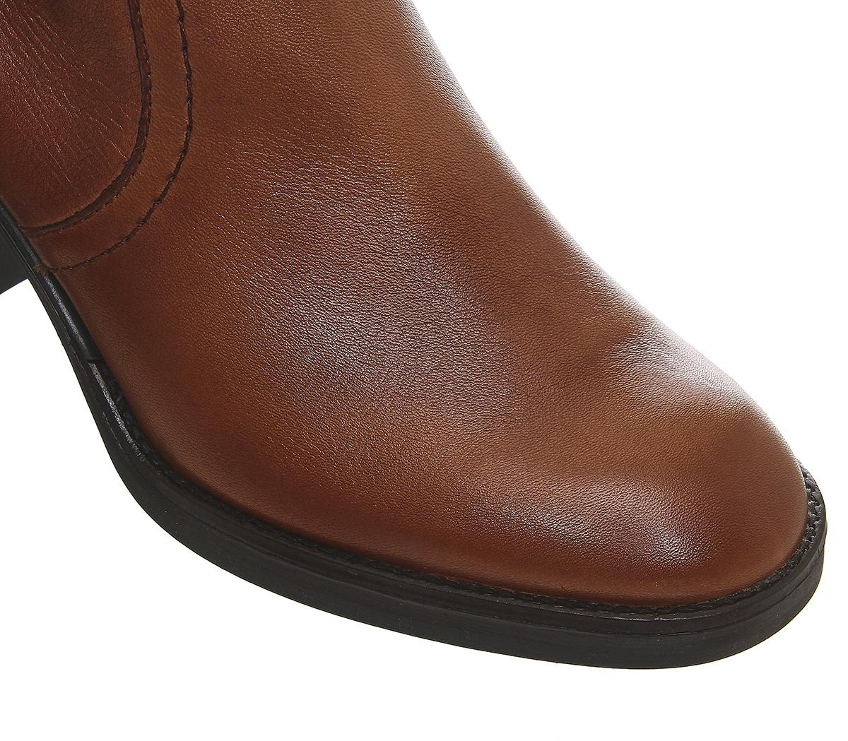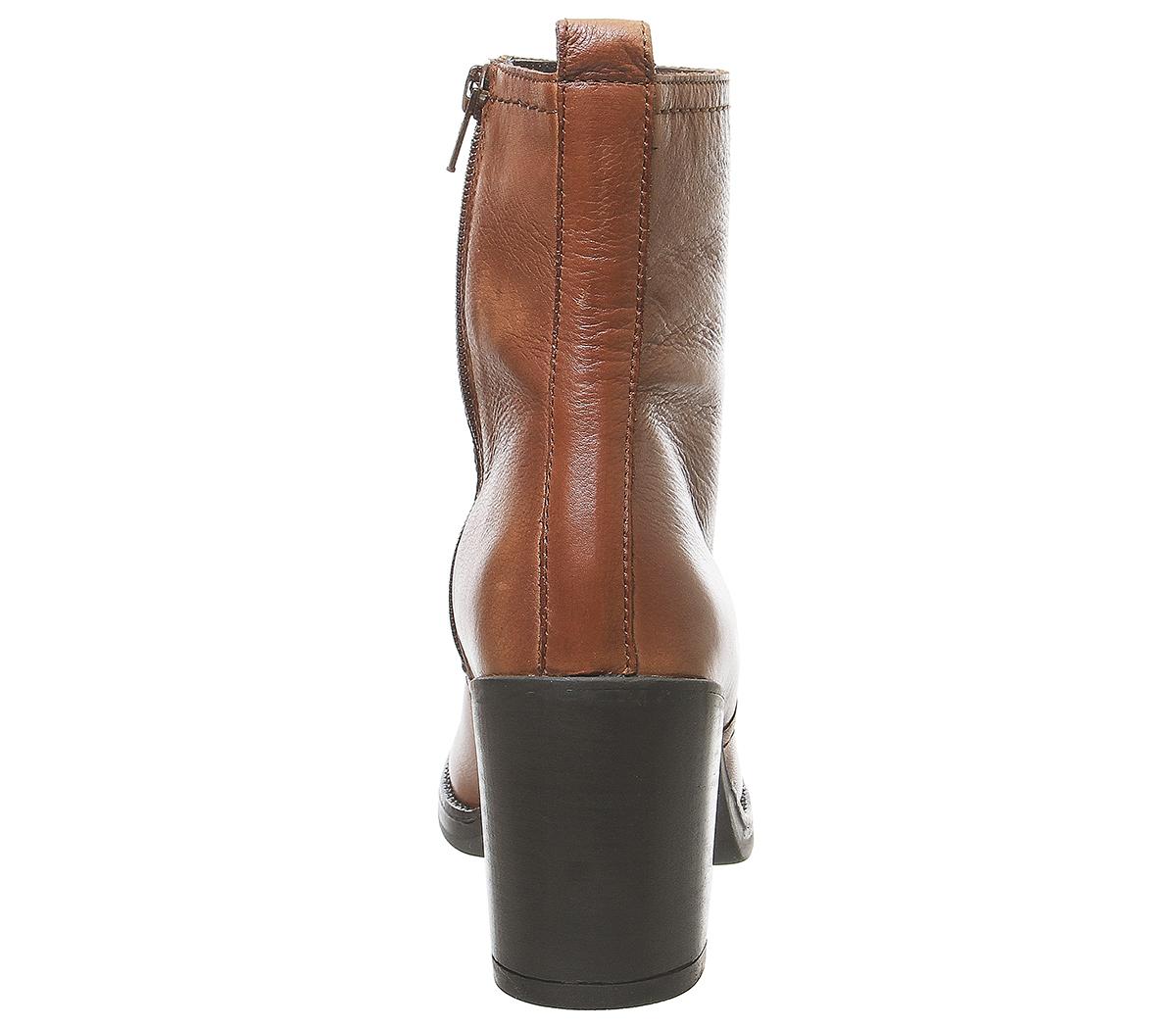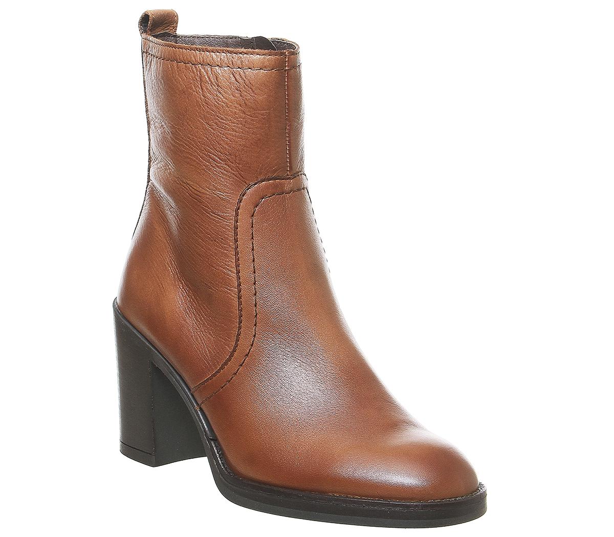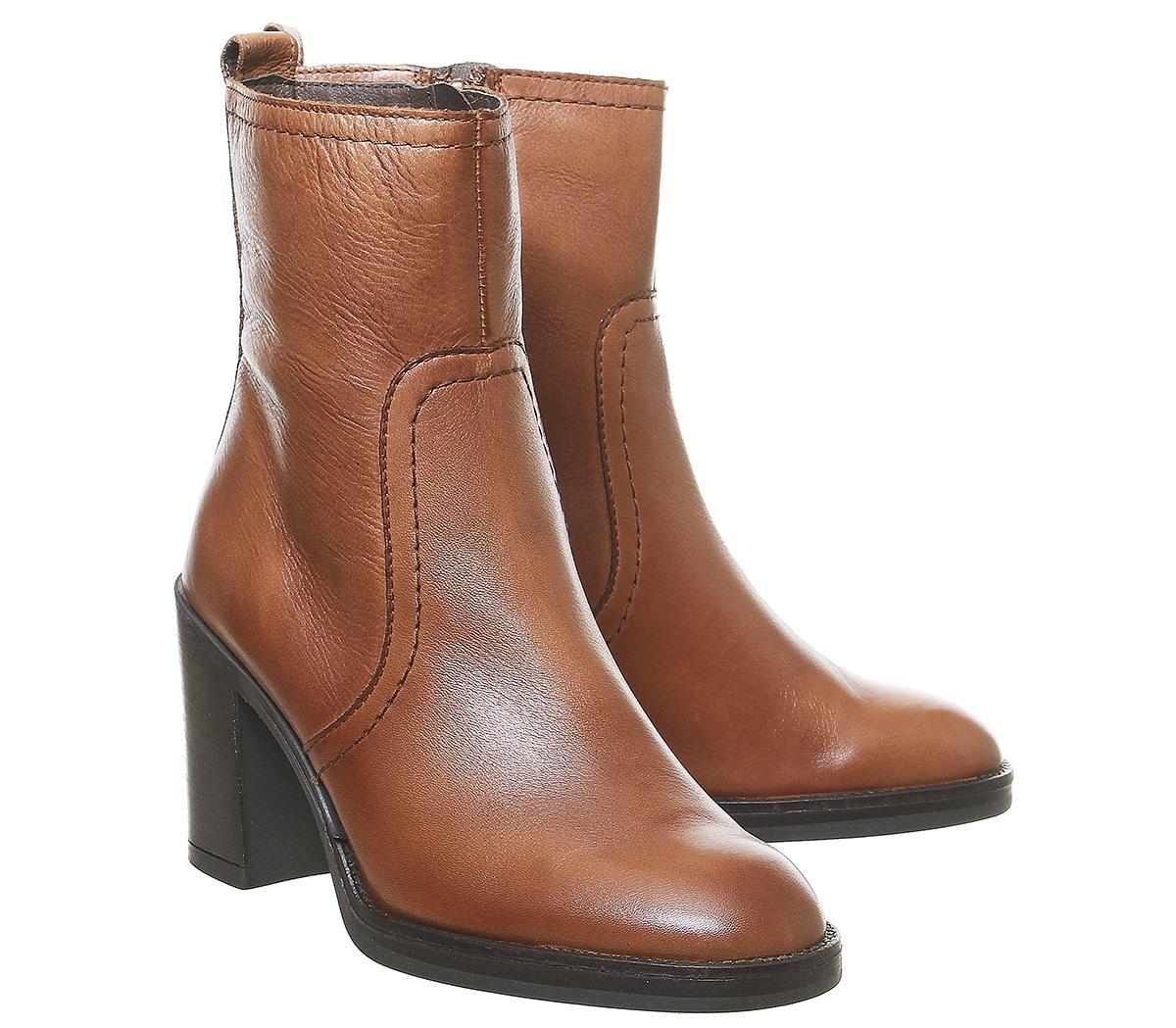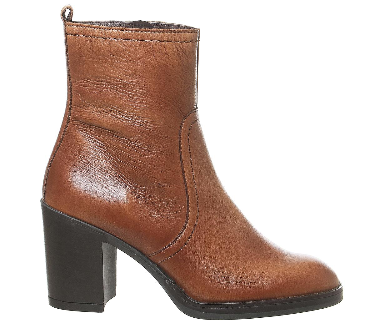A soft, clean cut heeled ankle boot with a tapered toe. In a rich tan brown colourway