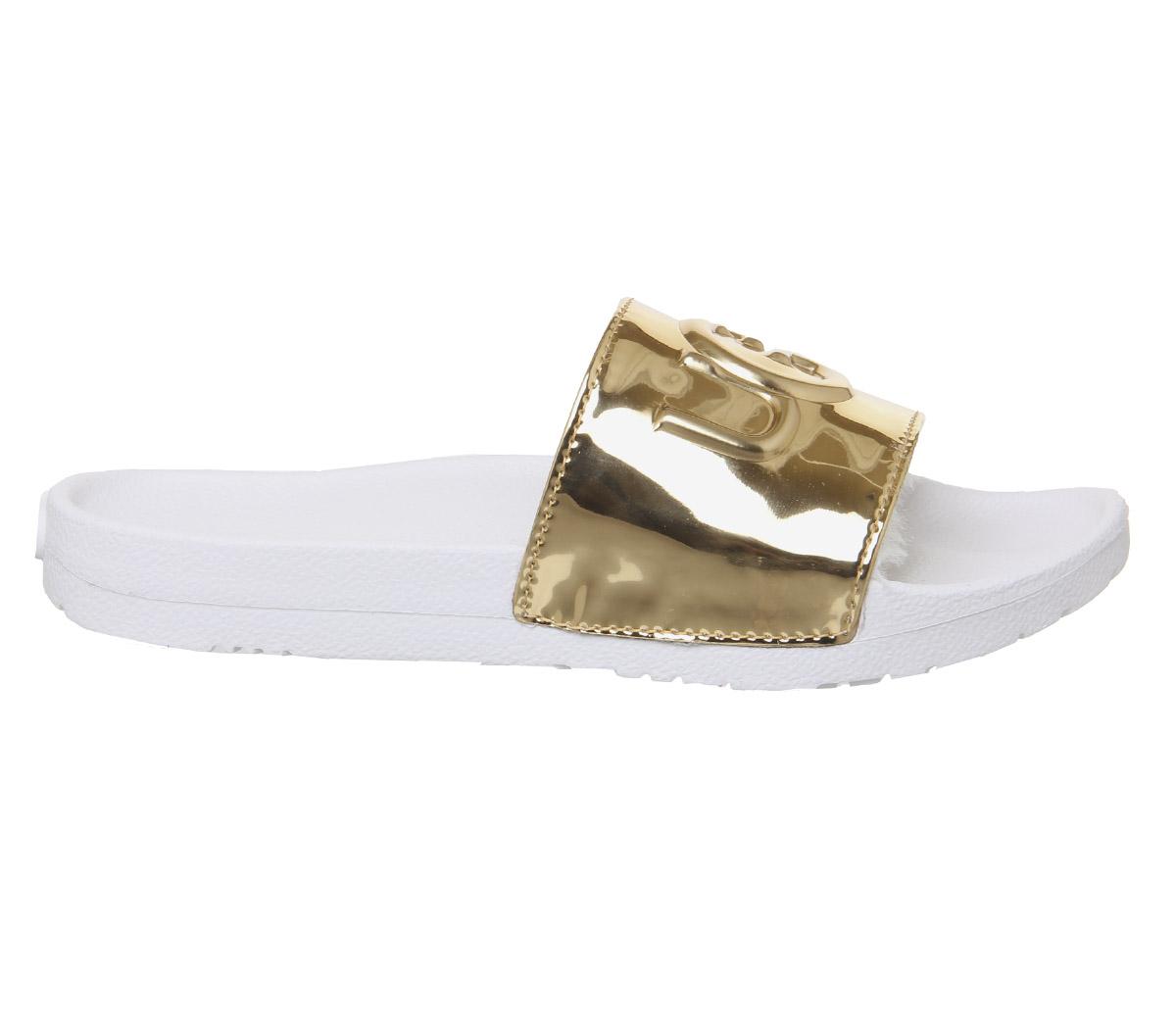 Updating their popular Royale silhouette with a shiny embossed strap. This iteration comes in a gold colourway