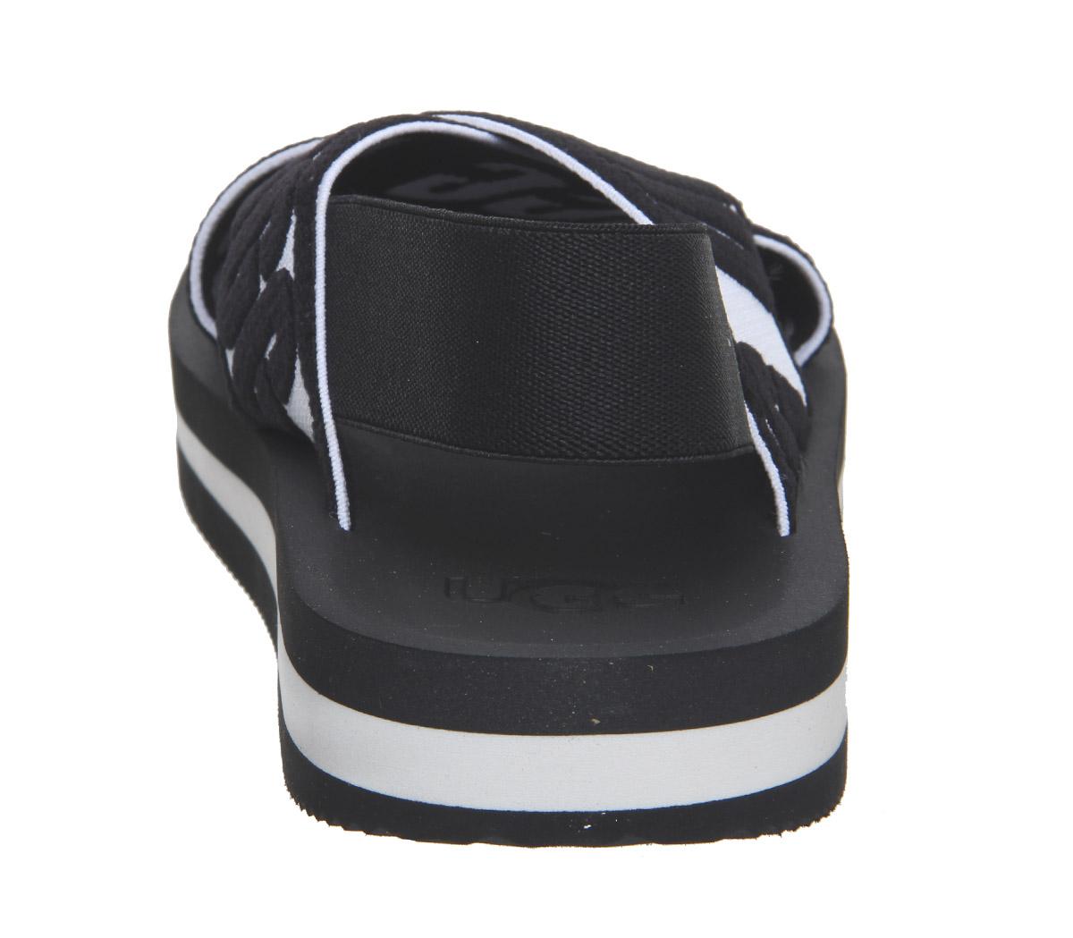 Bold graphic sandals, perfect for your city adventures. Featuring a bold criss cross woven elasticated upper and slightly elevated flatform.