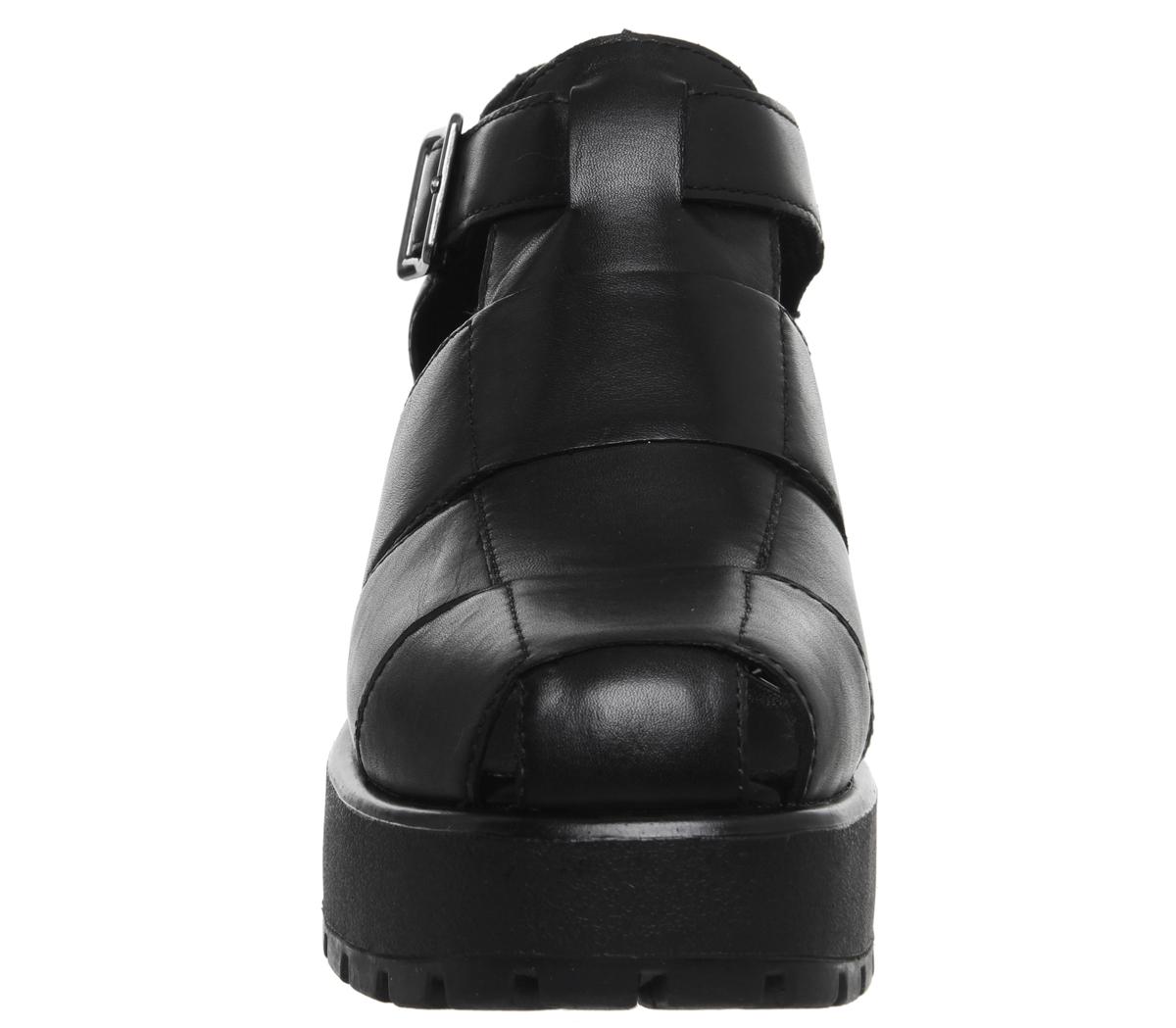 The classic Dioon Chelsea Boot has been reimagined for the perfect summer sandal. This chunky 90's inspired style has all the attitude with a black leather upper, cut out sides and a platform, cleated sole.