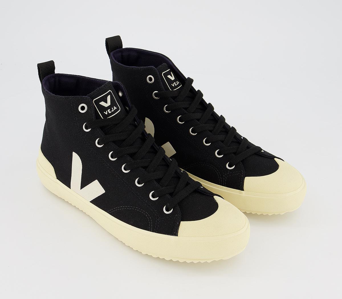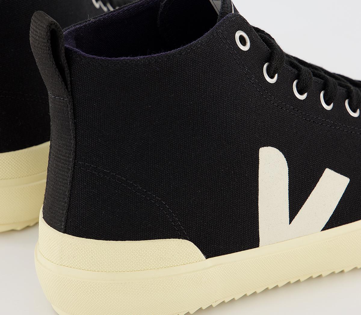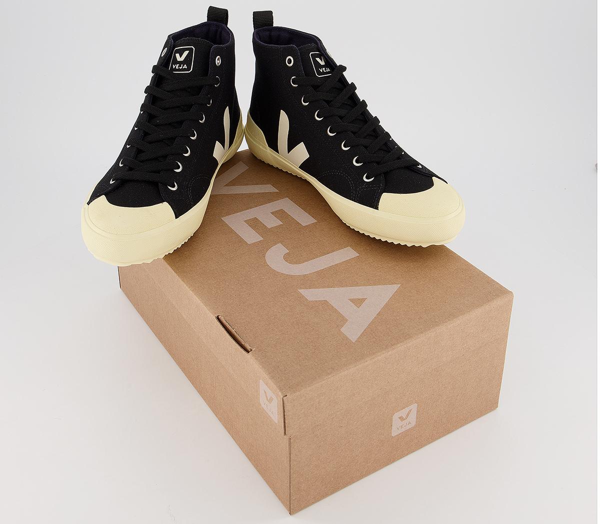 A modern and chic design, the Nova high top trainer is made with an organic cotton upper and lining with screenprinted detailing. In a black and cream colourway.