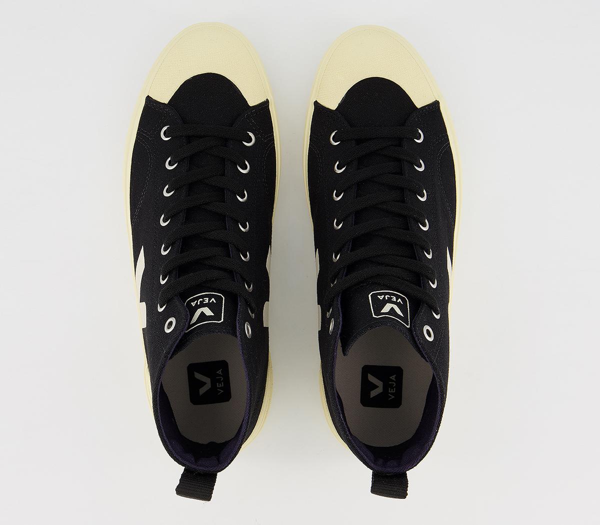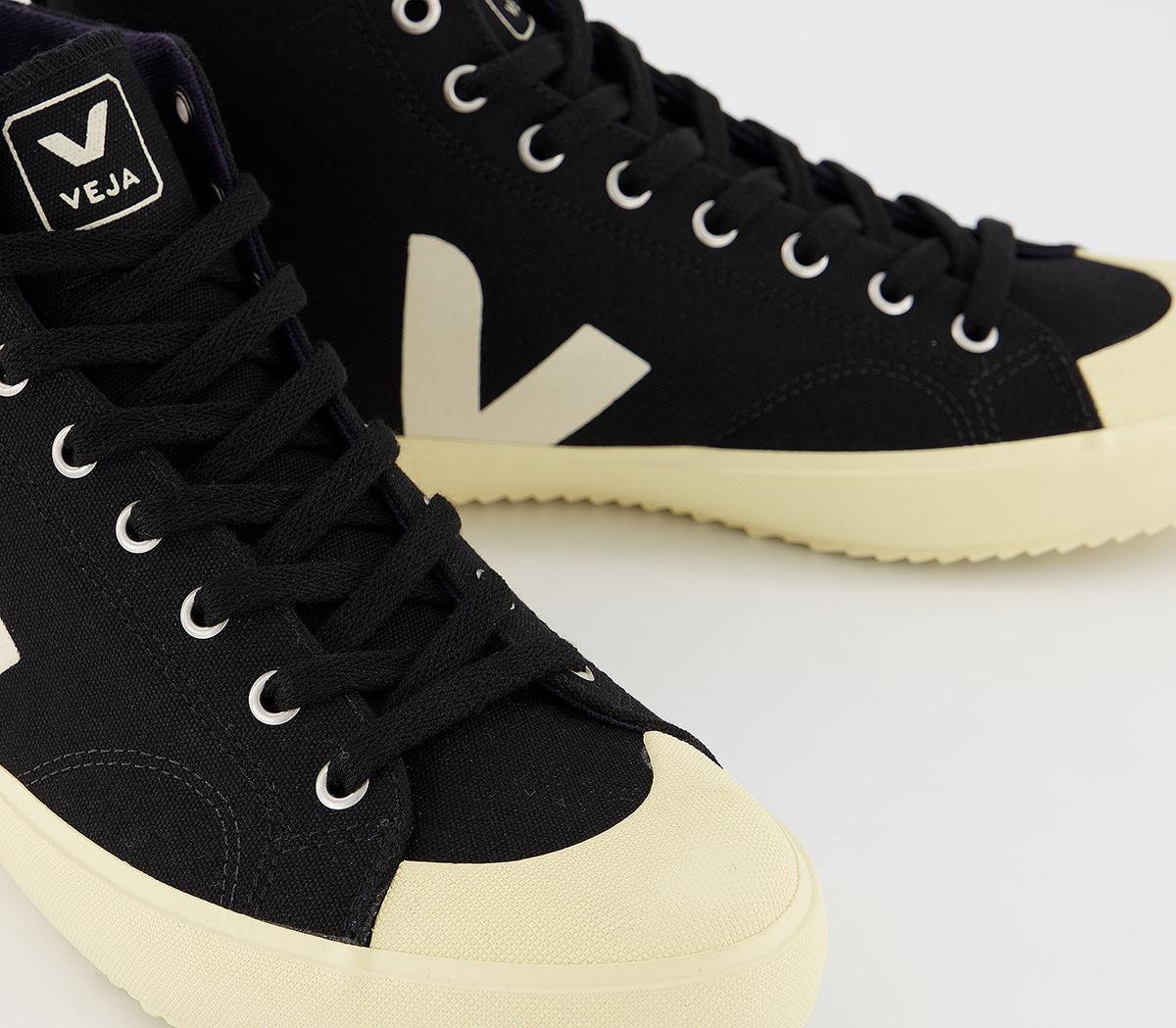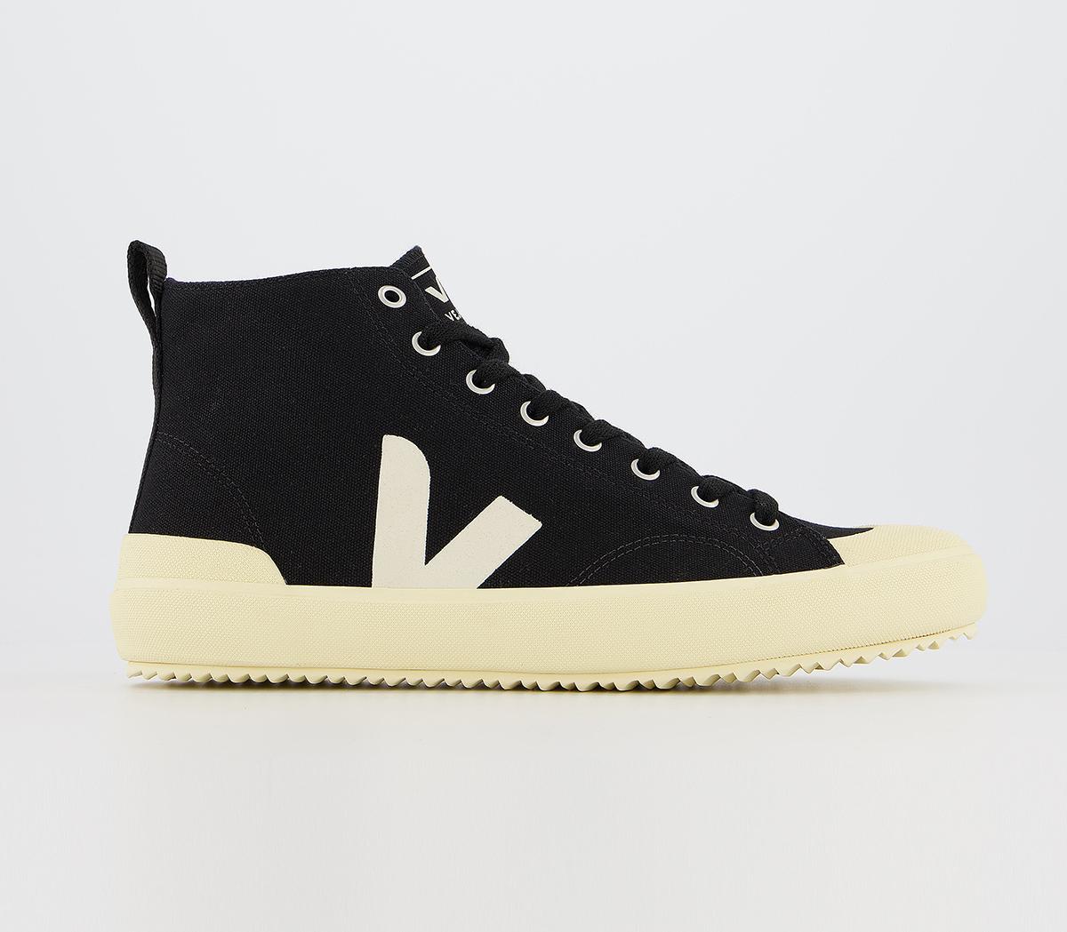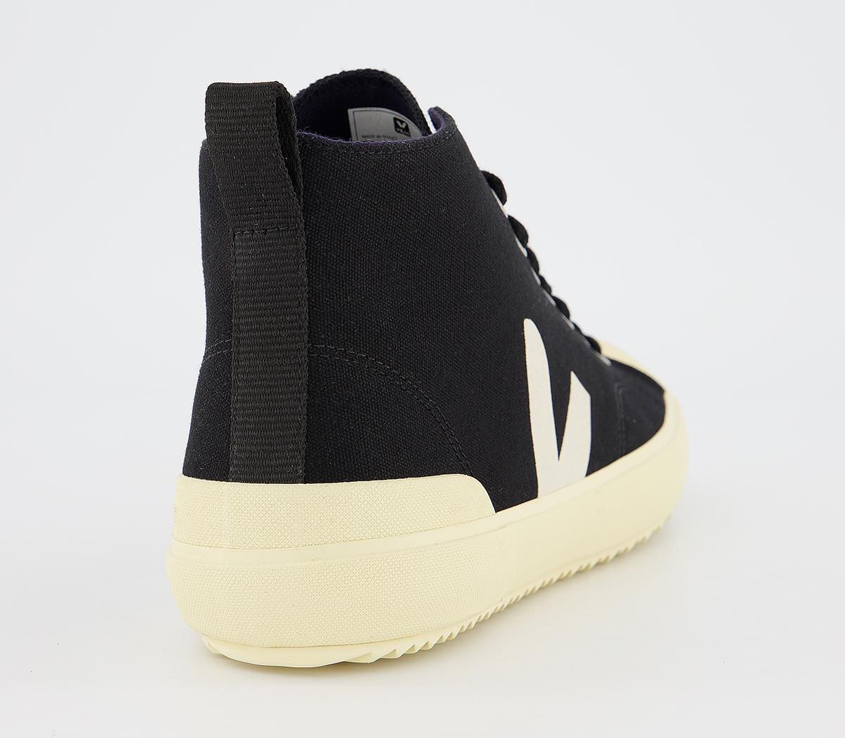 A modern and chic design, the Nova high top trainer is made with an organic cotton upper and lining with screenprinted detailing. In a black and cream colourway.