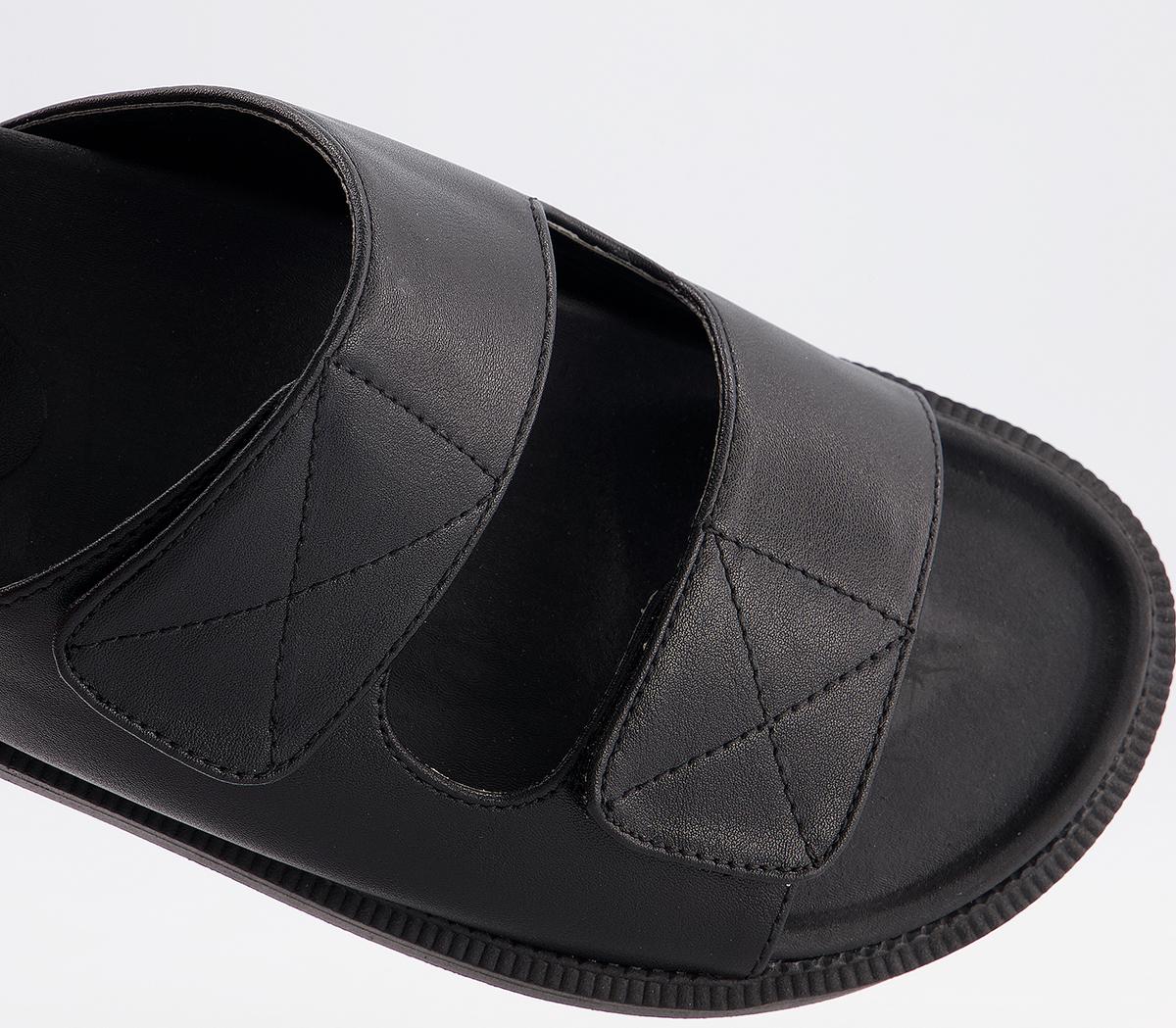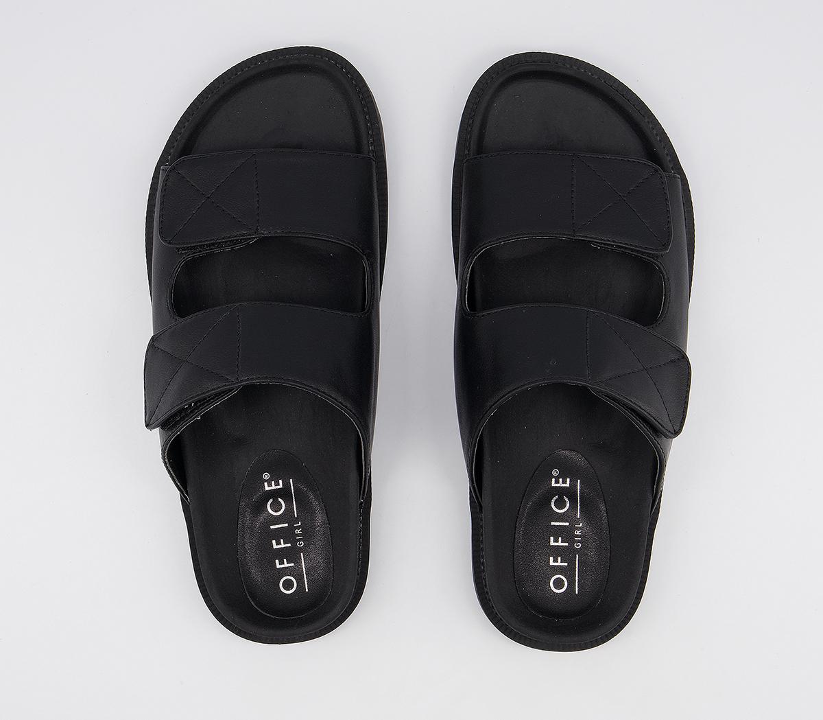 Footbed sandals you can wear all day every day. Featuring black uppers with velcro straps.