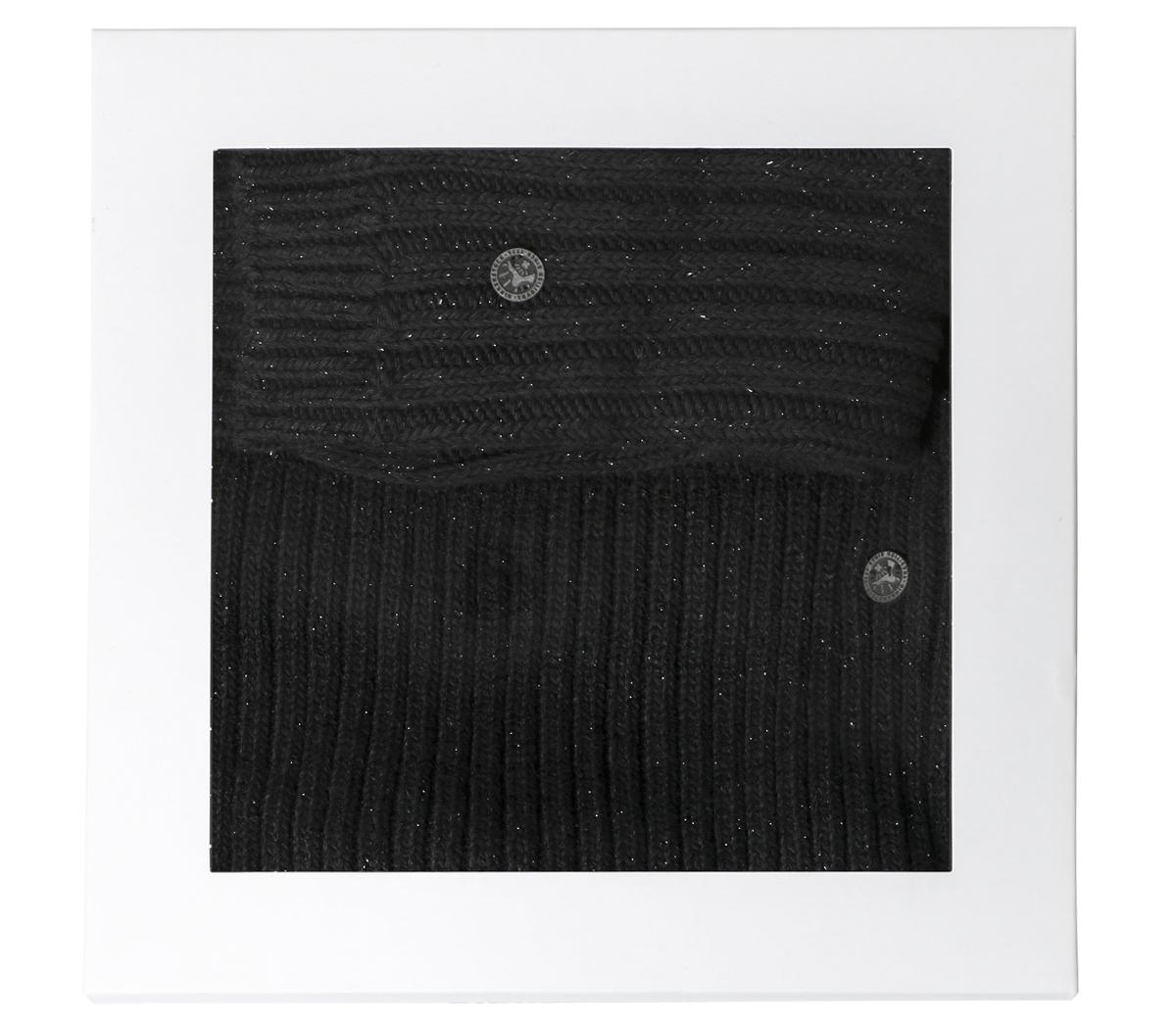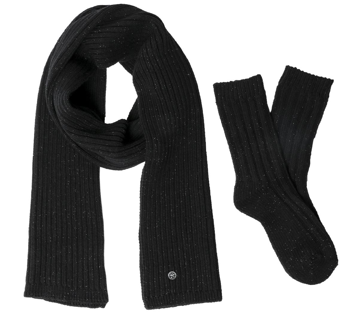 Gifting season is among us! Get your cosy fix with this two-piece scarf and sock set. Featuring black knitted uppers with branded detailing